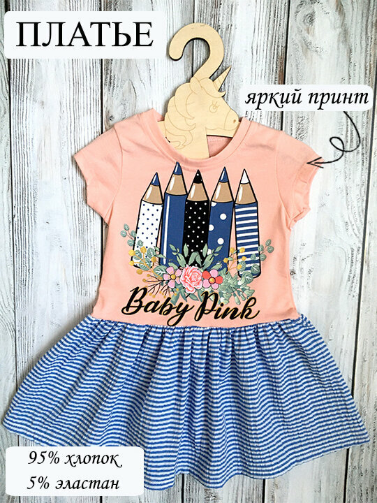 Купить Платье Baby Pink, размер 104 см - 4 года, синий/коралловый