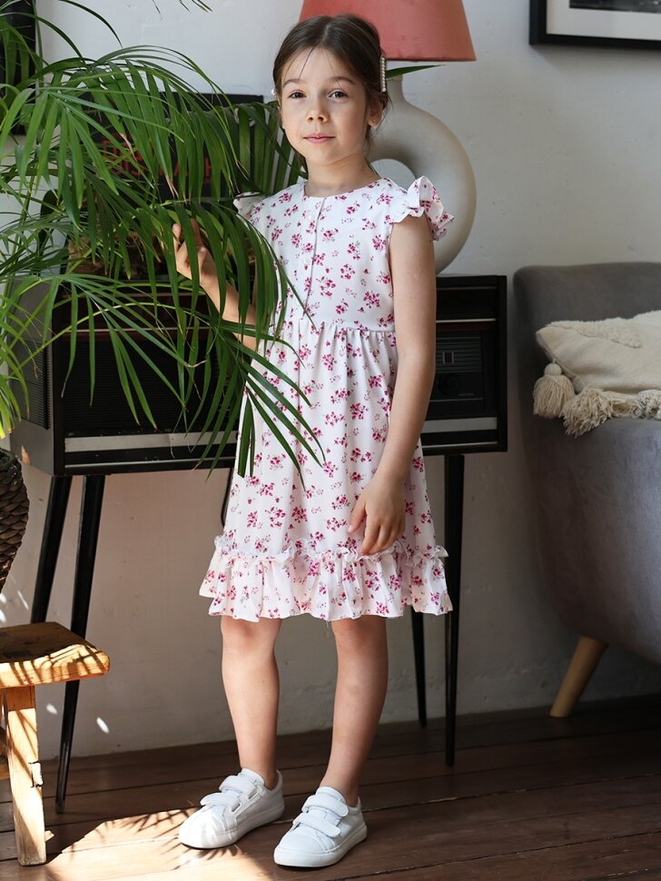 Платье Бушон На каждый день, размер 122-128, белый, розовый