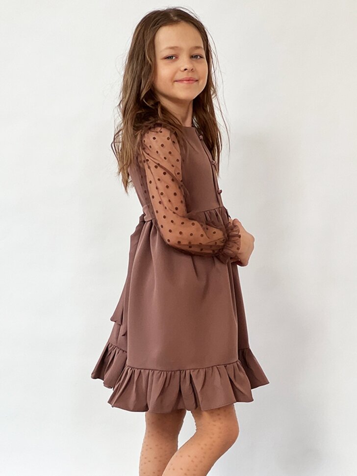 Платье Бушон Праздник, размер 128-134, коричневый интересное: