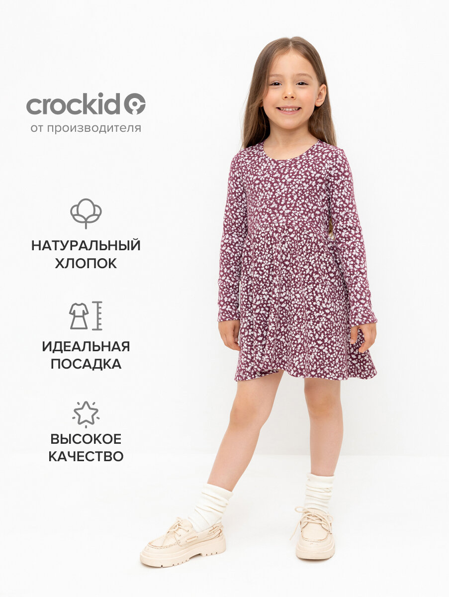 Купить Платье crockid КР 5892/насыщенная клюква,милые цветочки к497, размер 64/128, фиолетовый