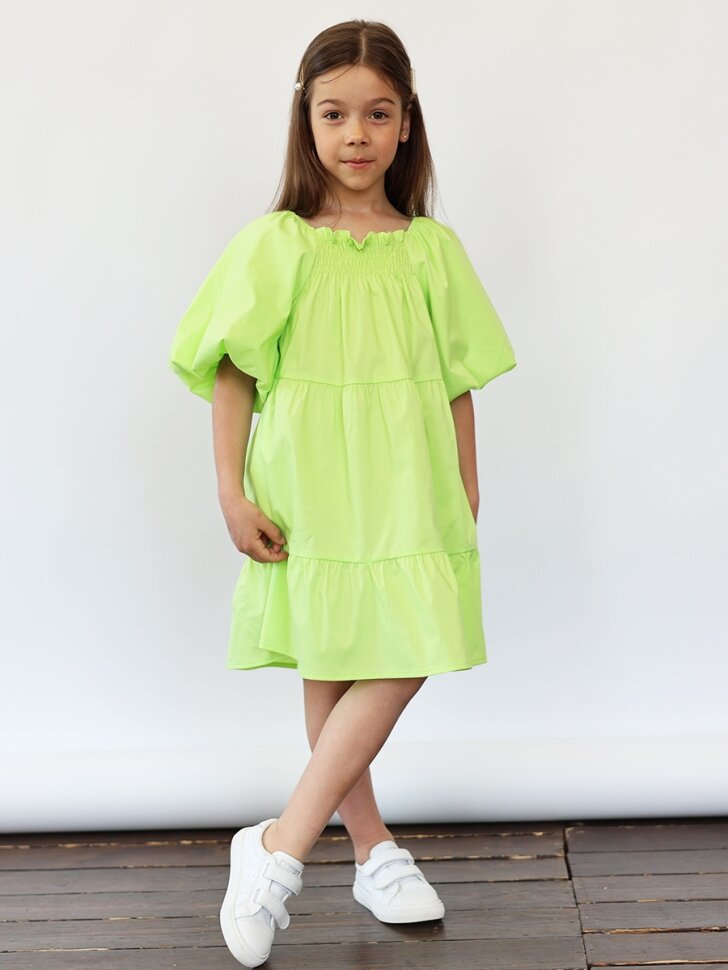 Платье Бушон Хлопок, размер 122-128, салатовый