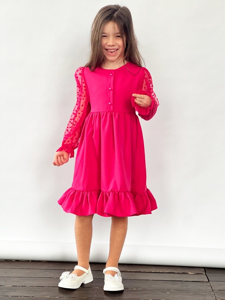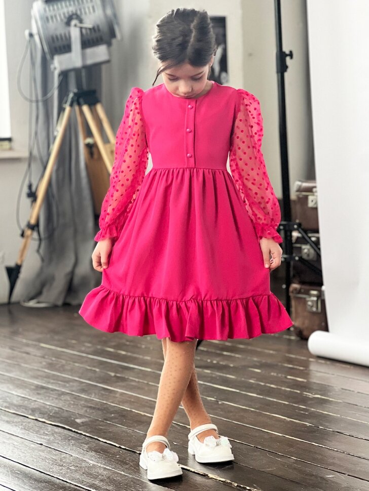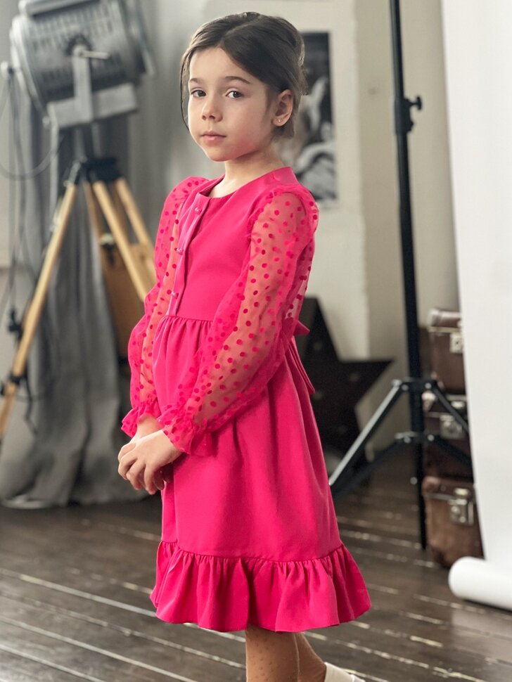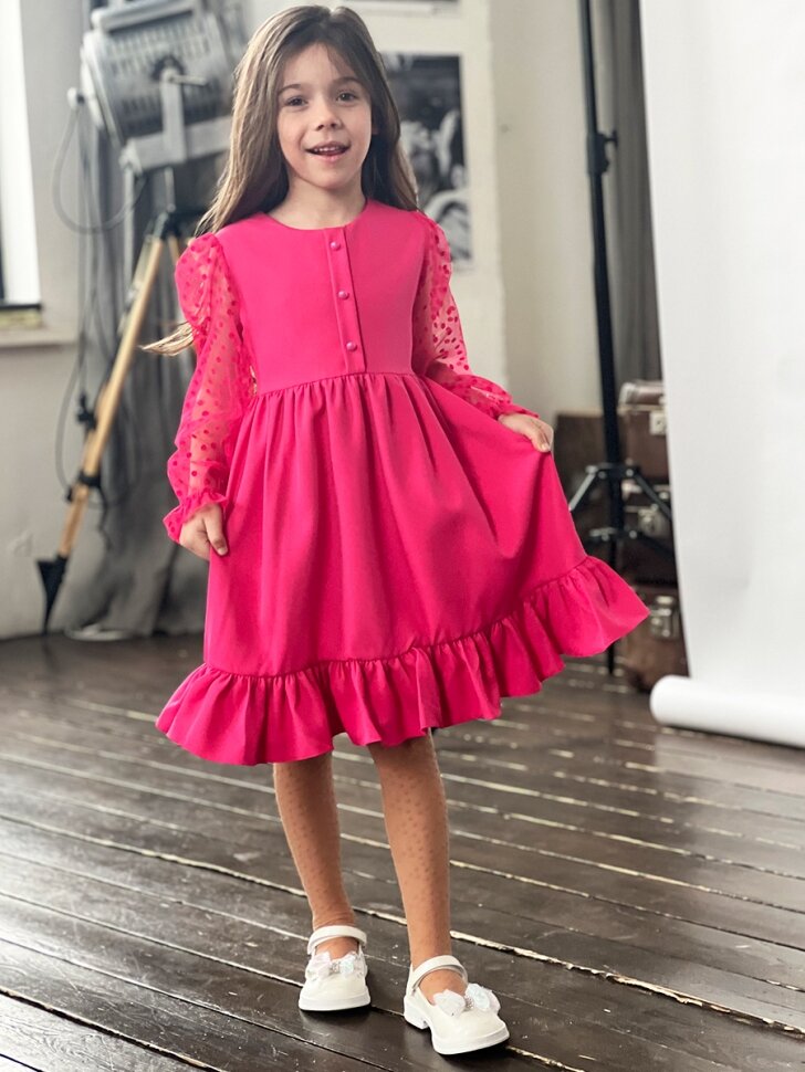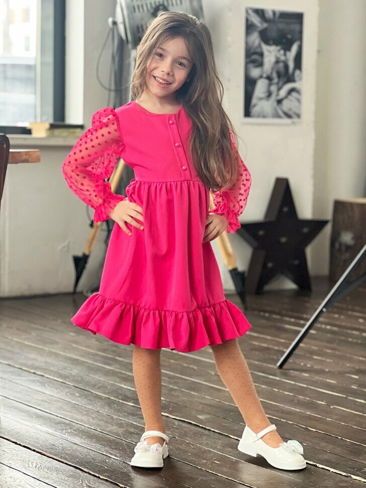 Платье Бушон Праздник, размер 122-128, фуксия интересное: