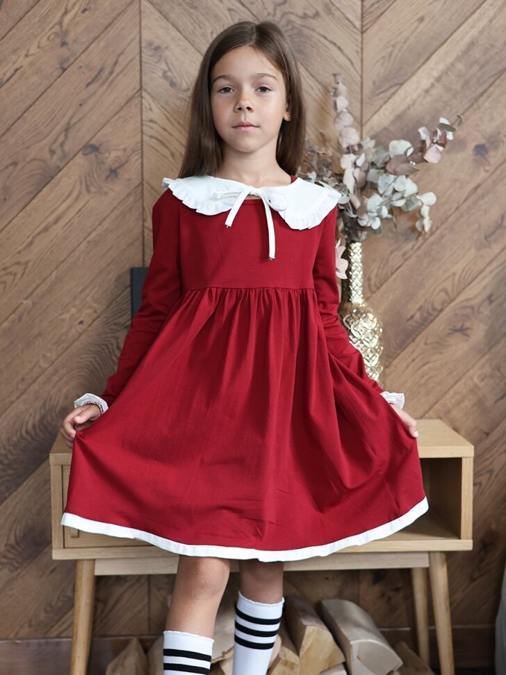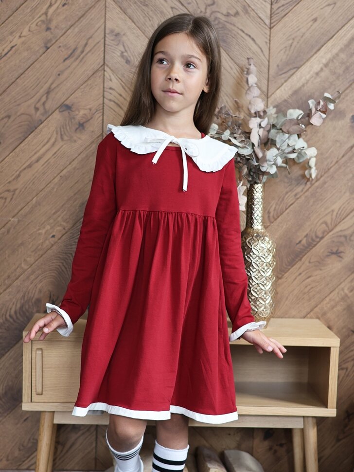 Школьное платье Бушон На каждый день, размер 128-134, бордовый интересное:
