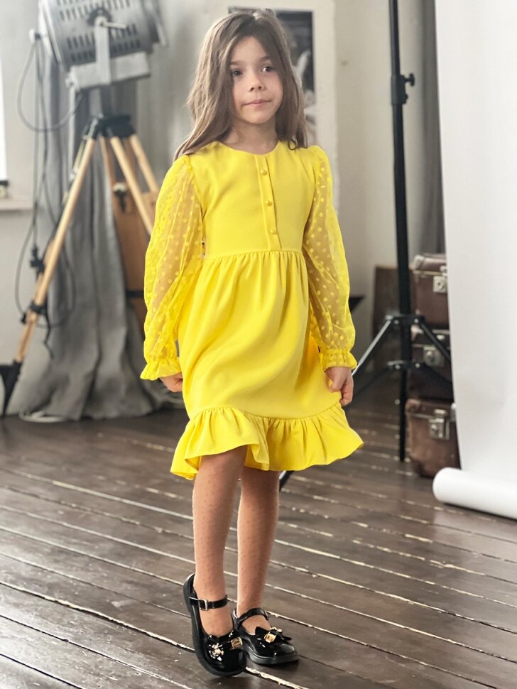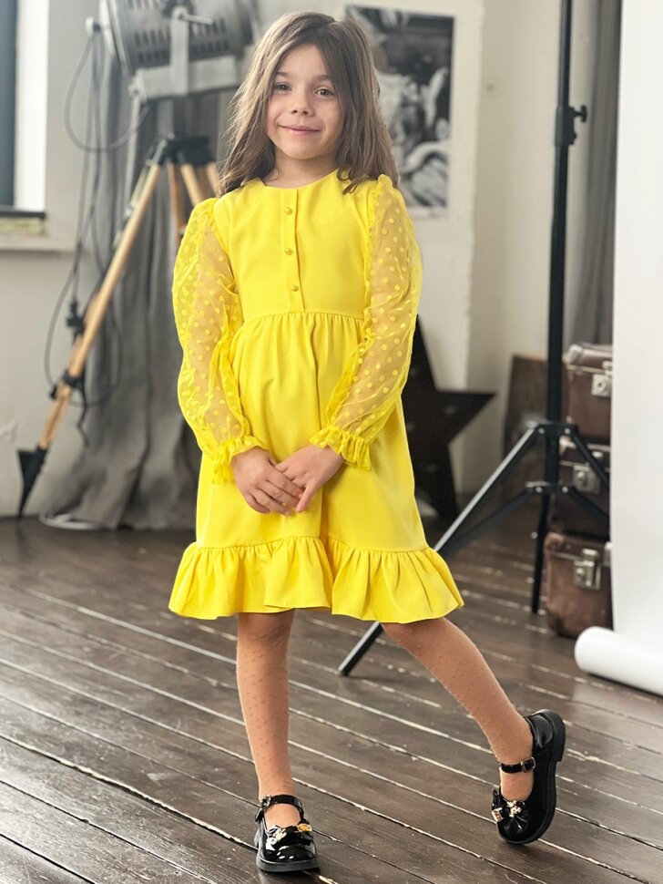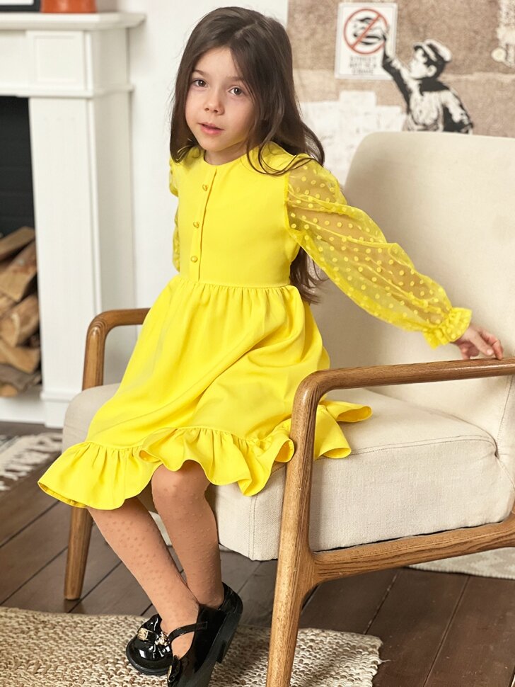 Платье Бушон Праздник, размер 116-122, желтый
