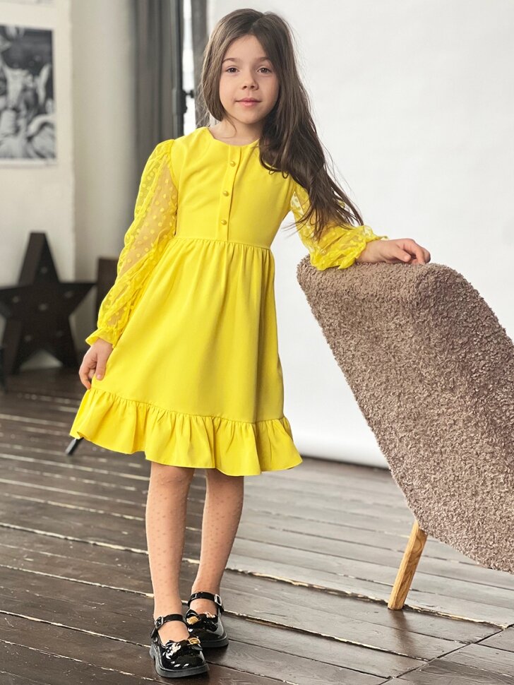 Платье Бушон Праздник, размер 152-158, желтый