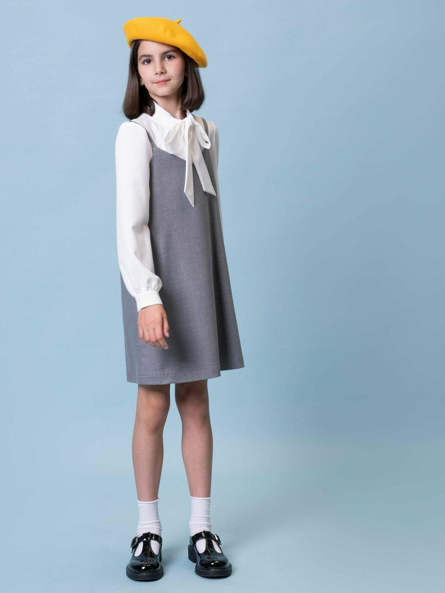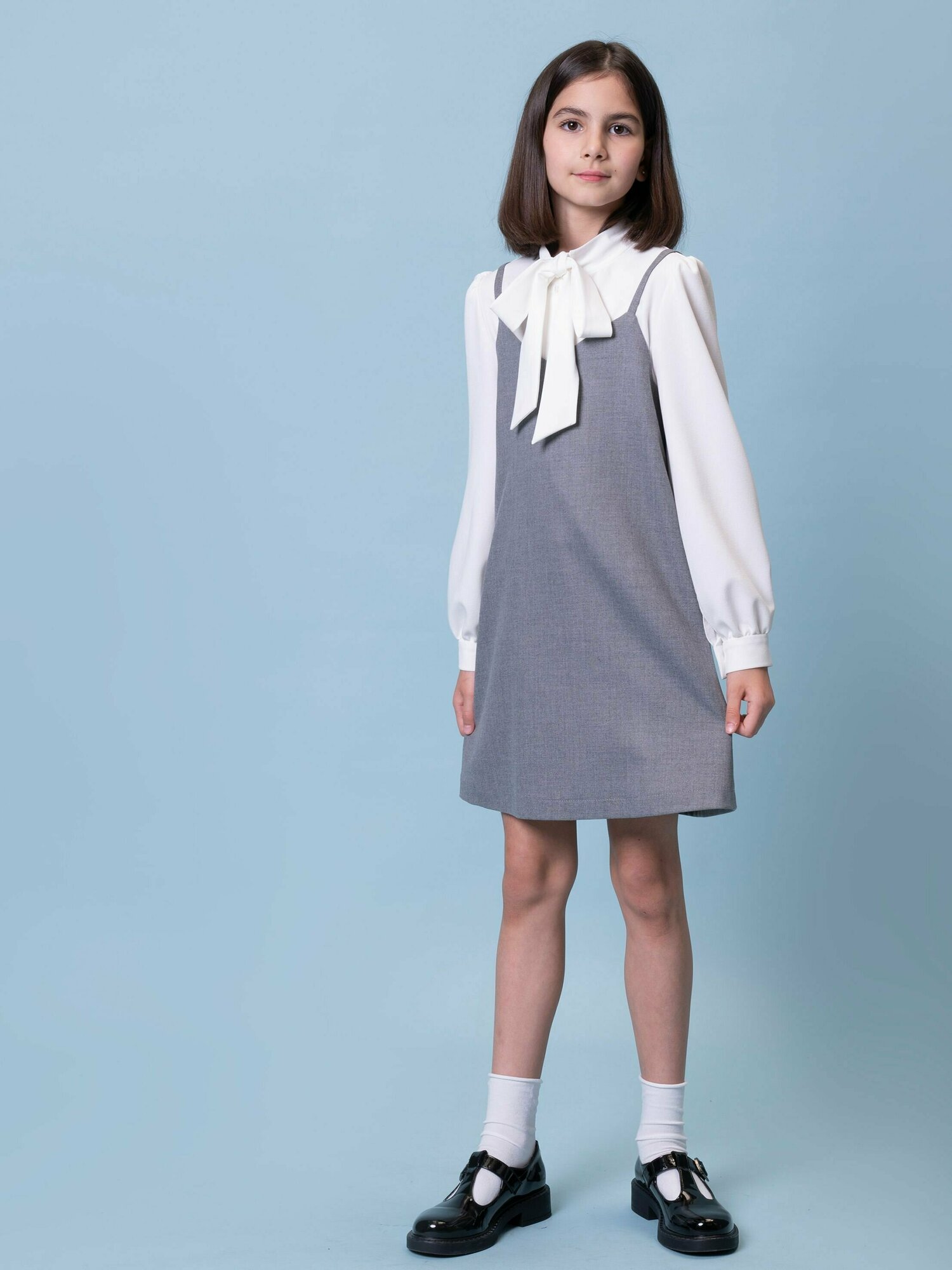 Купить Школьное платье Ole!Twice Школа 2023, размер 134, серый