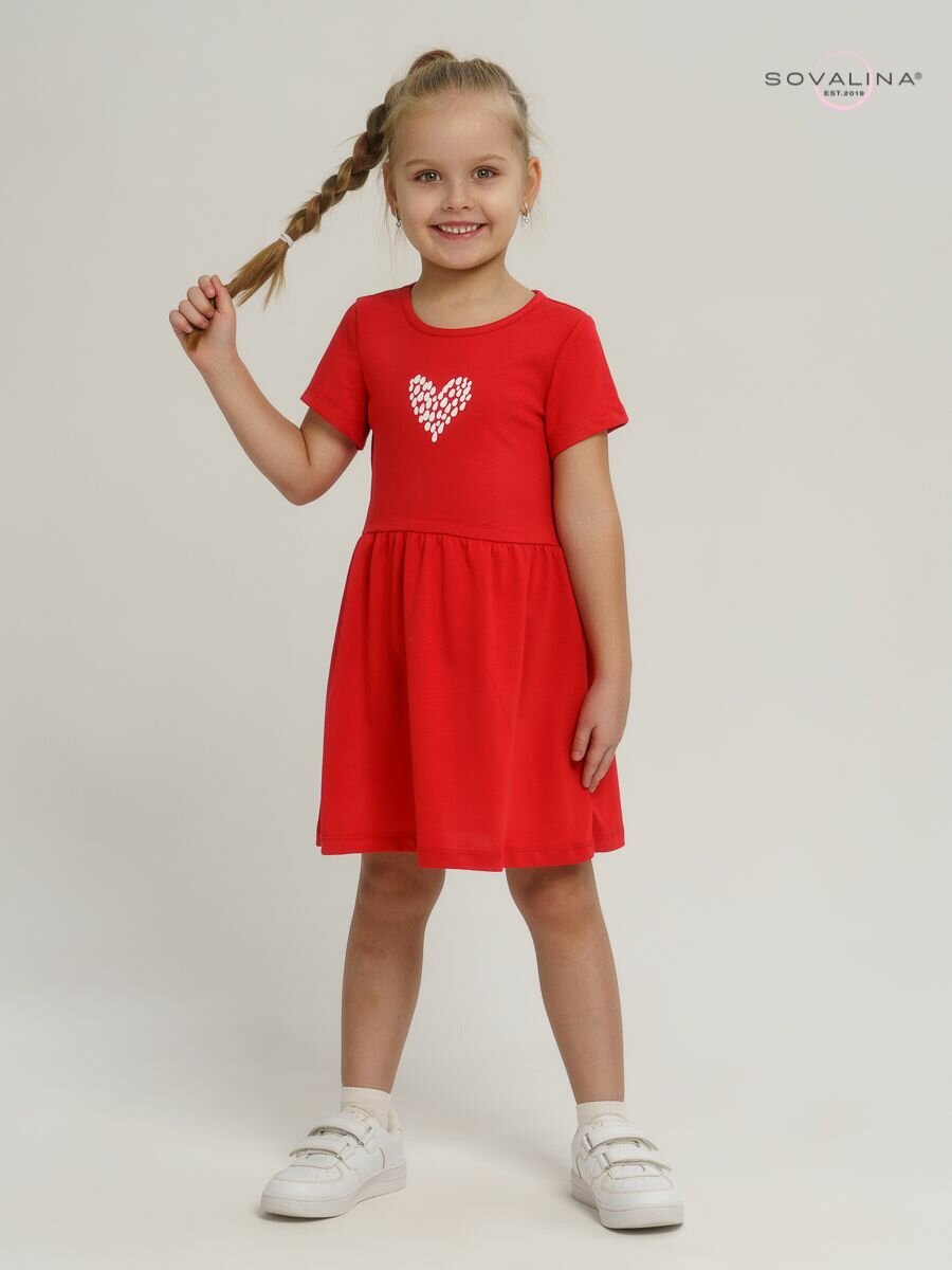 Платье SOVALINA, размер 110, сердце на красном интересное: