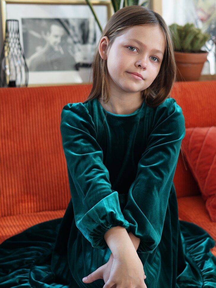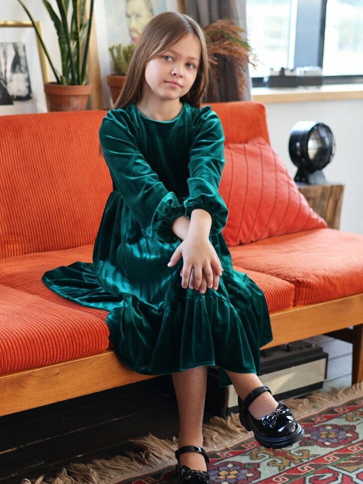 Платье Бушон, размер 122-128, изумрудный