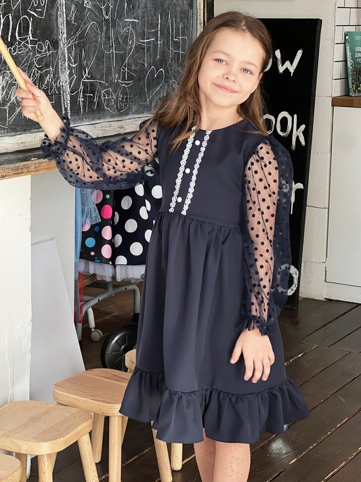 Платье Бушон Праздник, размер 116-122, темно-синий интересное:
