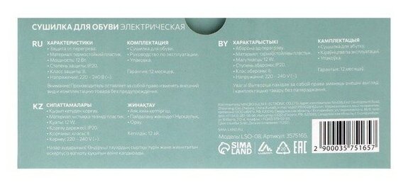 Электросушилка для обуви Luazon LSO-08 3575165