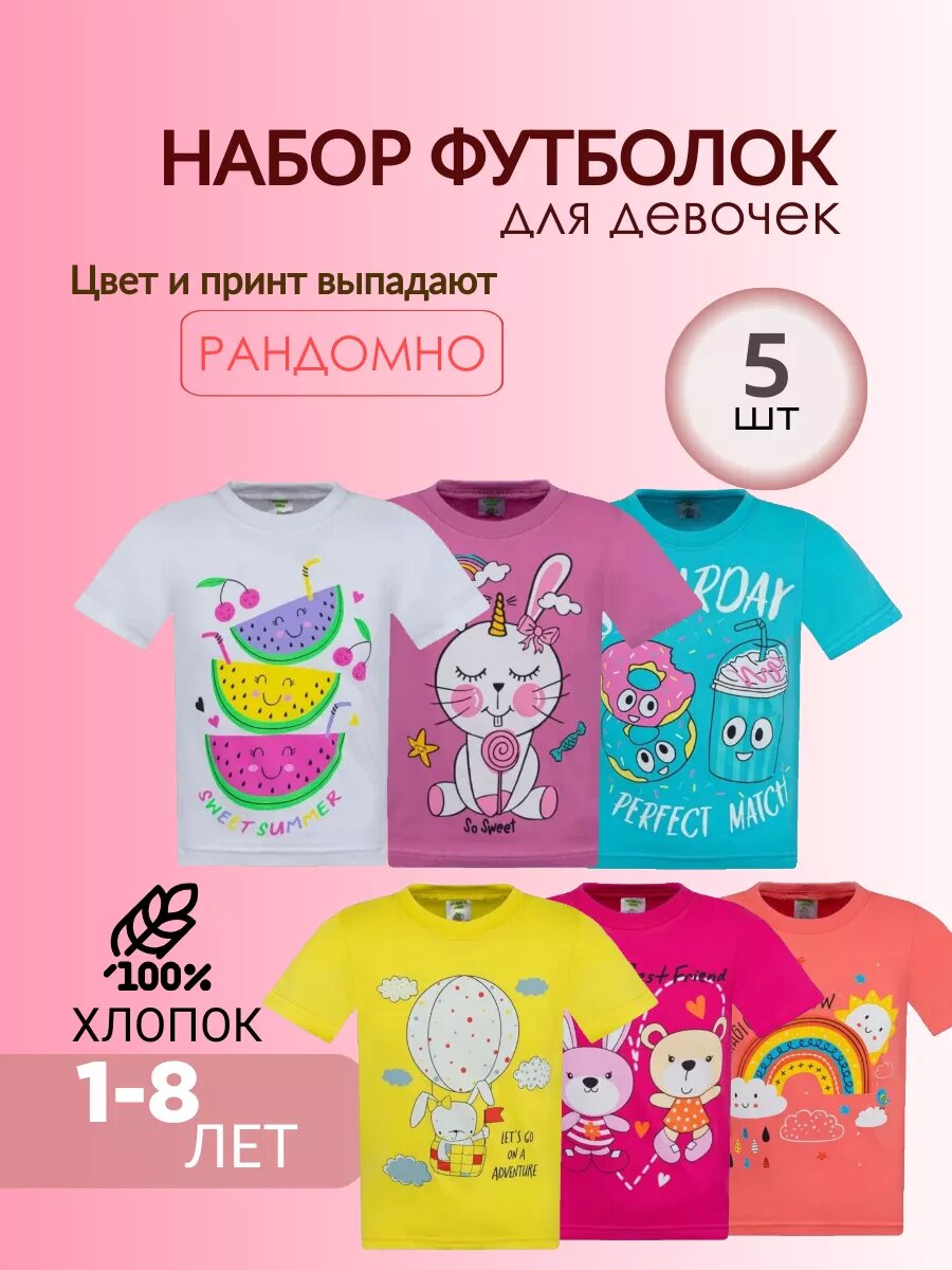 Купить Футболка СЛОНЁНОК МИМИ, комплект из 5 шт., размер 7л, голубой, желтый, оранжевый, розовый, белый