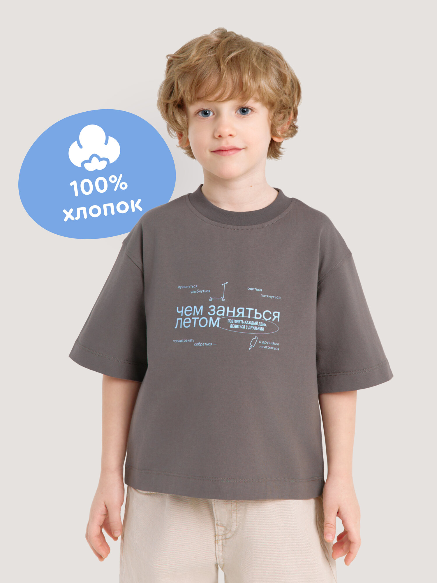 Купить Футболка Junion Oversize с принтом, размер 98, серый