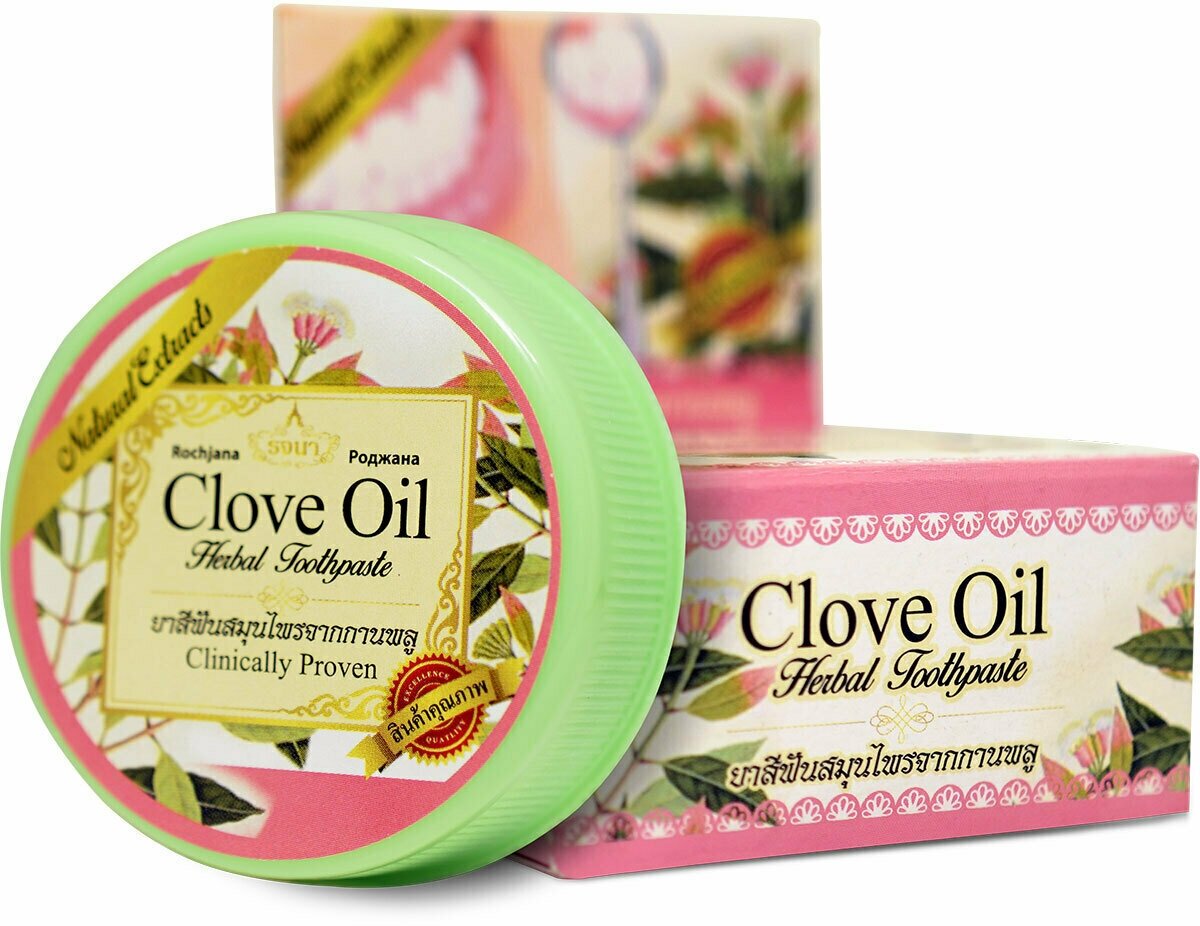 Таиланд Rochjana Clove Oil Отбеливающая зубная паста с Гвоздичным маслом 30 г