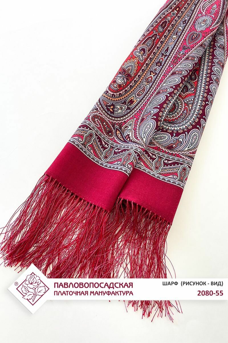 Шарф Павловопосадская платочная мануфактура для женщин,150х60 см, one size, красный/серый интересное: