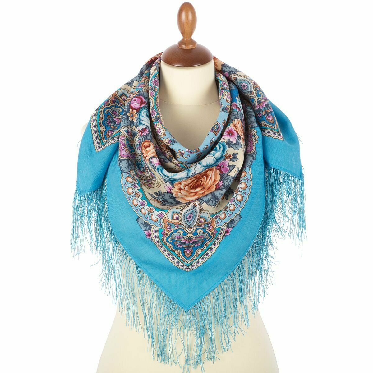 Купить Платок Павловопосадская платочная мануфактура для женщин,89х89 см, голубой/бежевый
