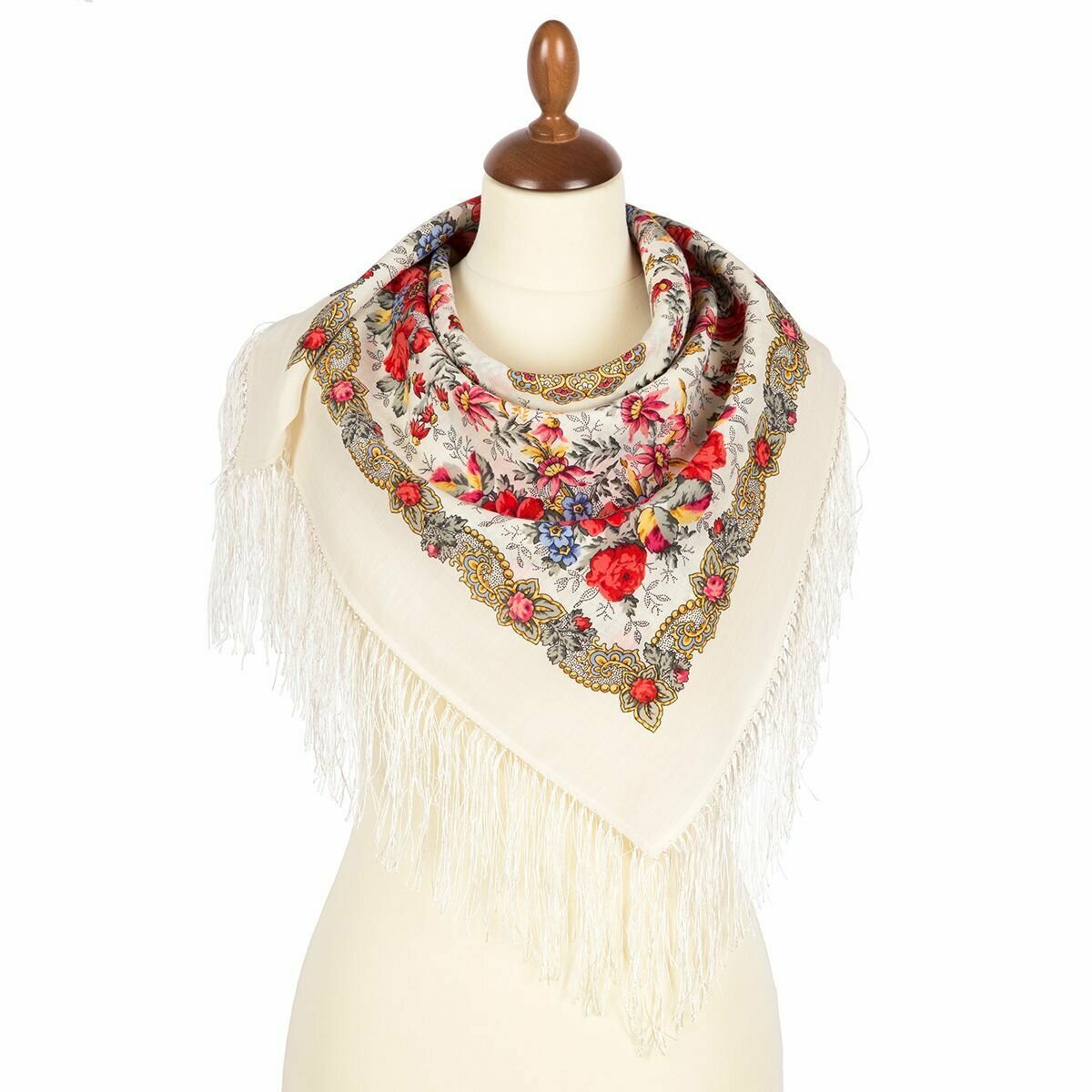 Купить Платок Павловопосадская платочная мануфактура для женщин,89х89 см, бежевый, белый