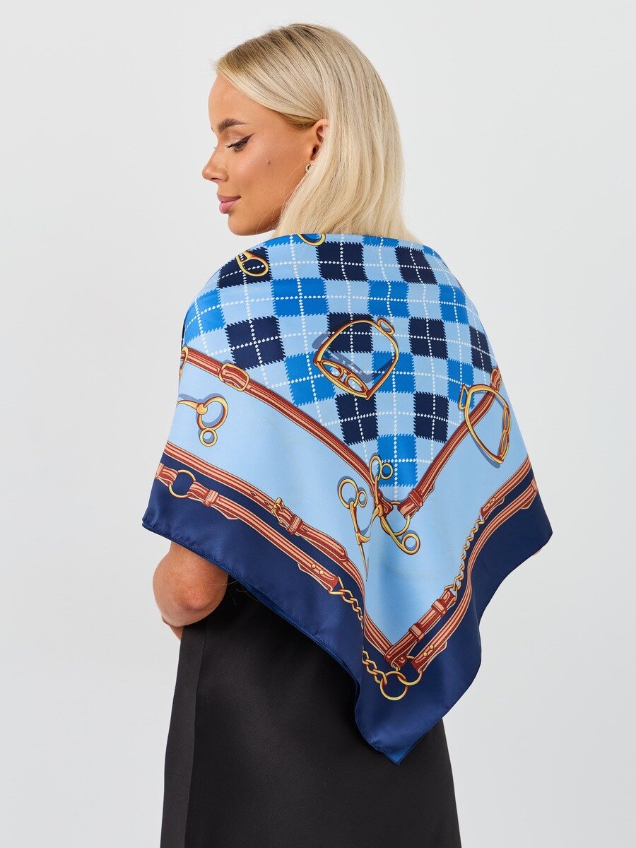 Купить Платок VENERA для женщин,90х90 см, синий/голубой/коричневый