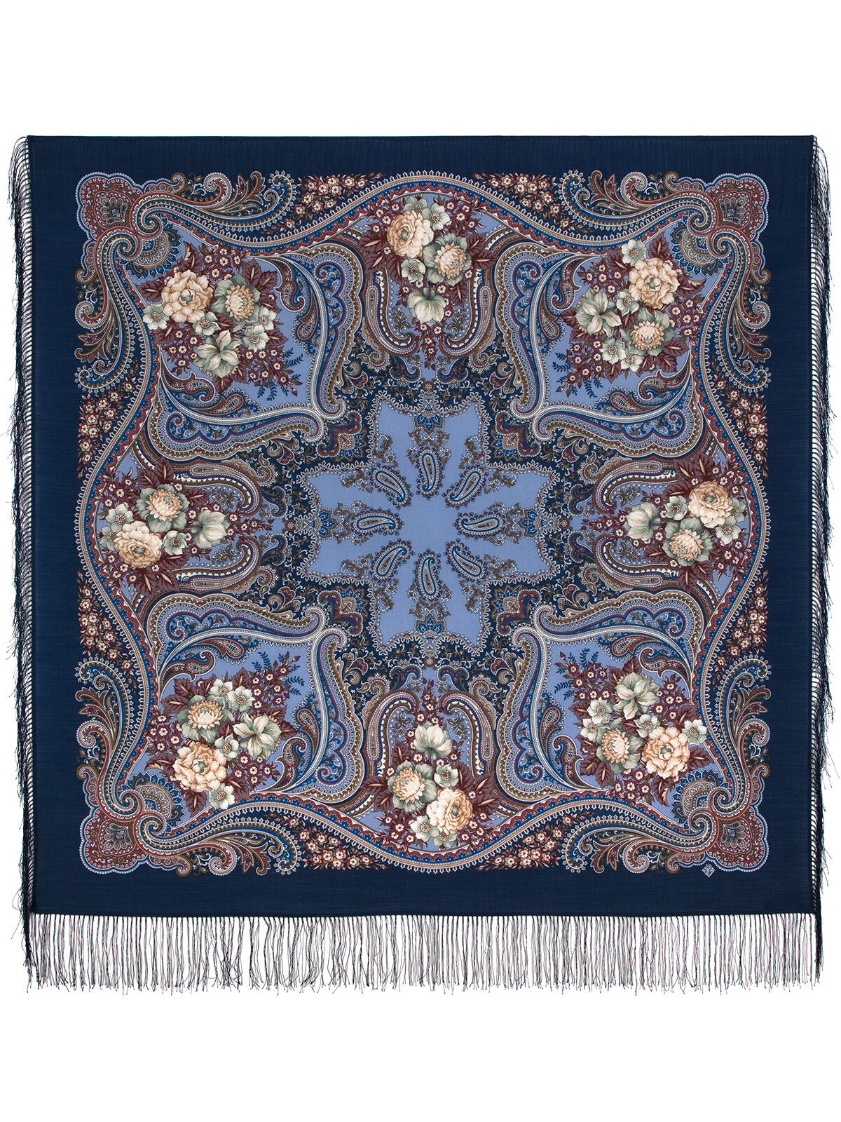 Платок Павловопосадская платочная мануфактура для женщин,125х125 см, синий интересное: