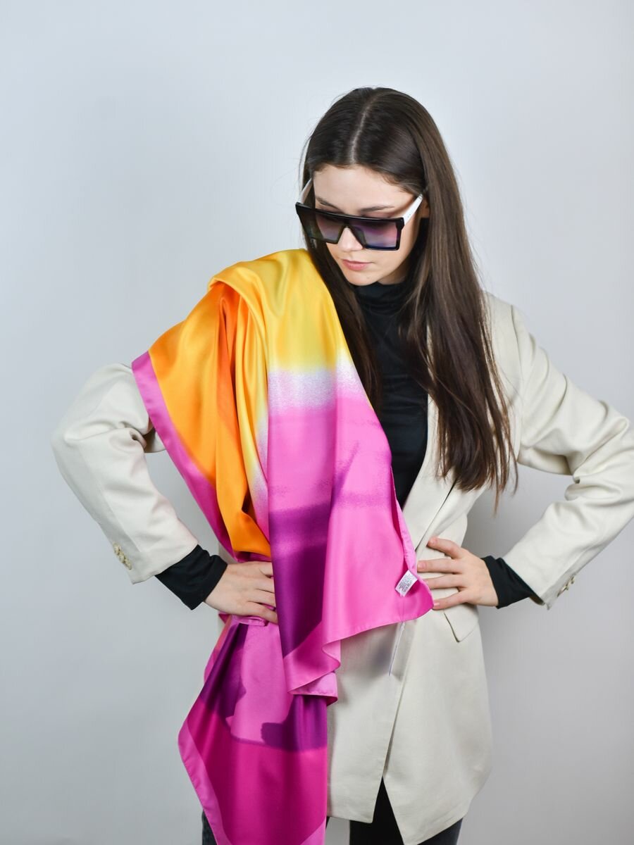 Платок VENERA для женщин,90х90 см, желтый, бежевый, фуксия интересное: