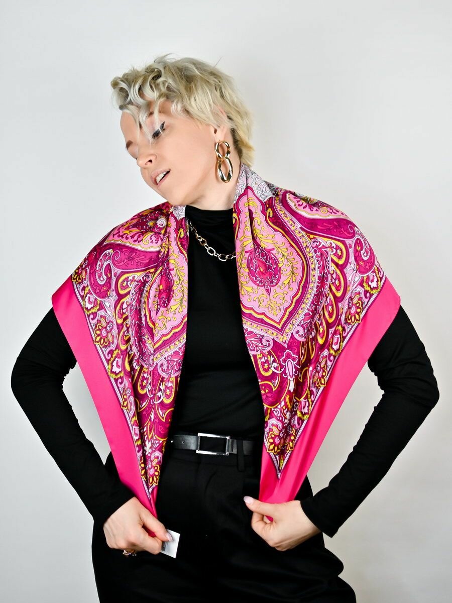 Платок VENERA для женщин,90х90 см, розовый, фуксия интересное: