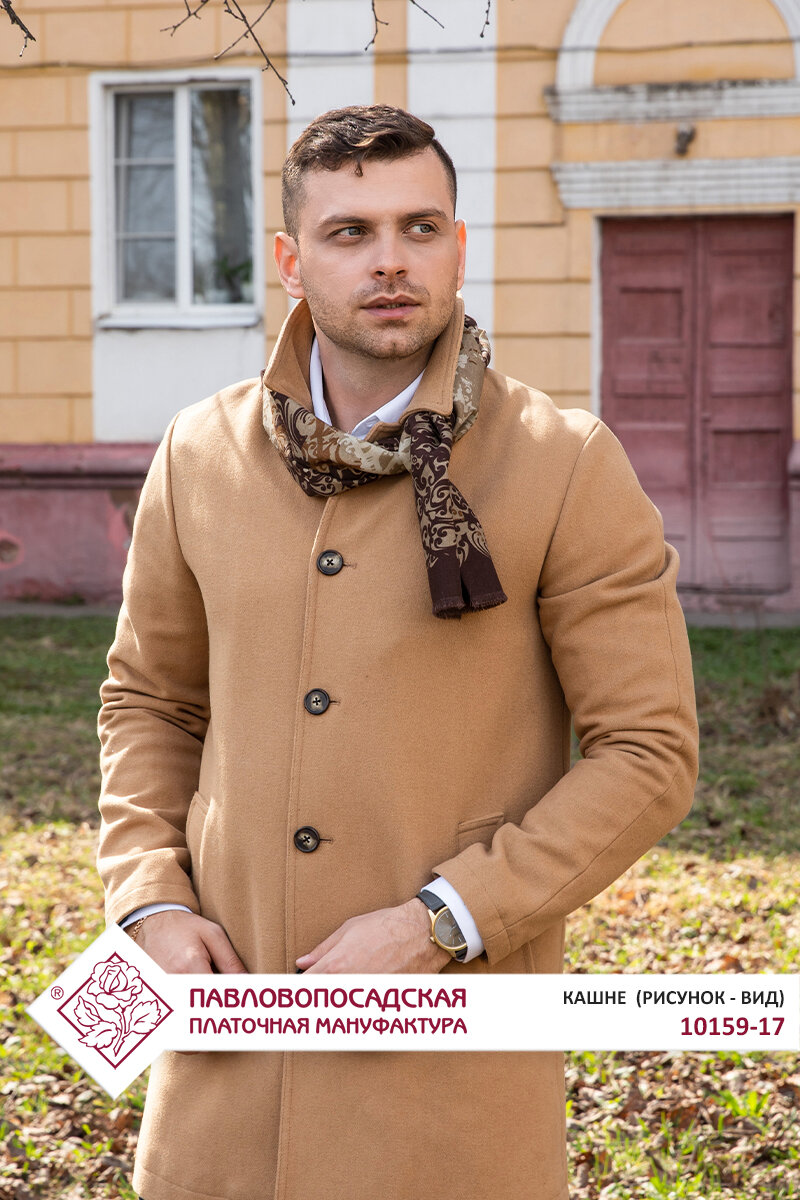 Шарф Павловопосадская платочная мануфактура для мужчин,140х27 см, one size, коричневый интересное: