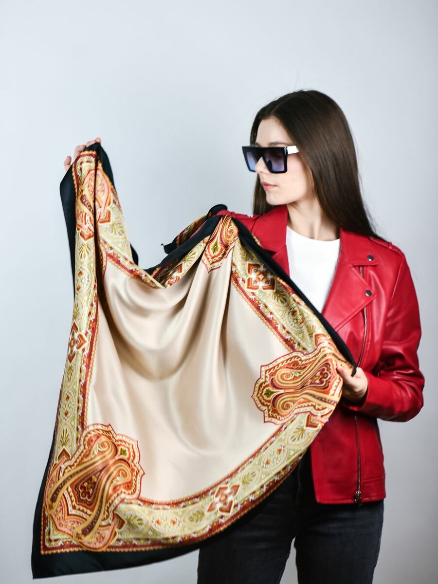 Платок VENERA для женщин,90х90 см, бежевый, черный, красный интересное: