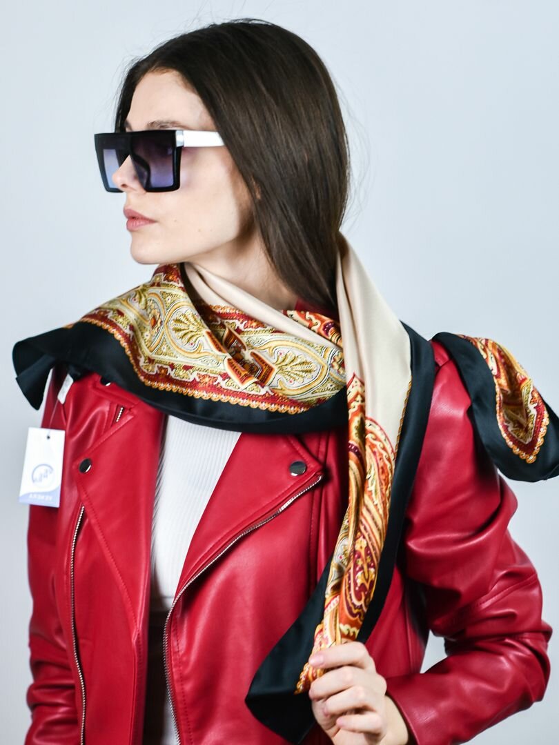 Купить Платок VENERA для женщин,90х90 см, бежевый, черный, красный