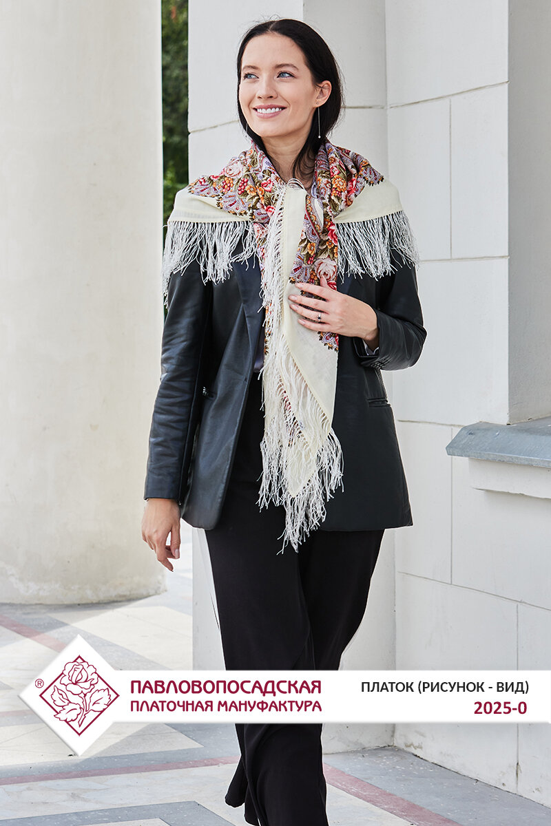 Платок Павловопосадская платочная мануфактура для женщин,125х125 см, бежевый интересное: