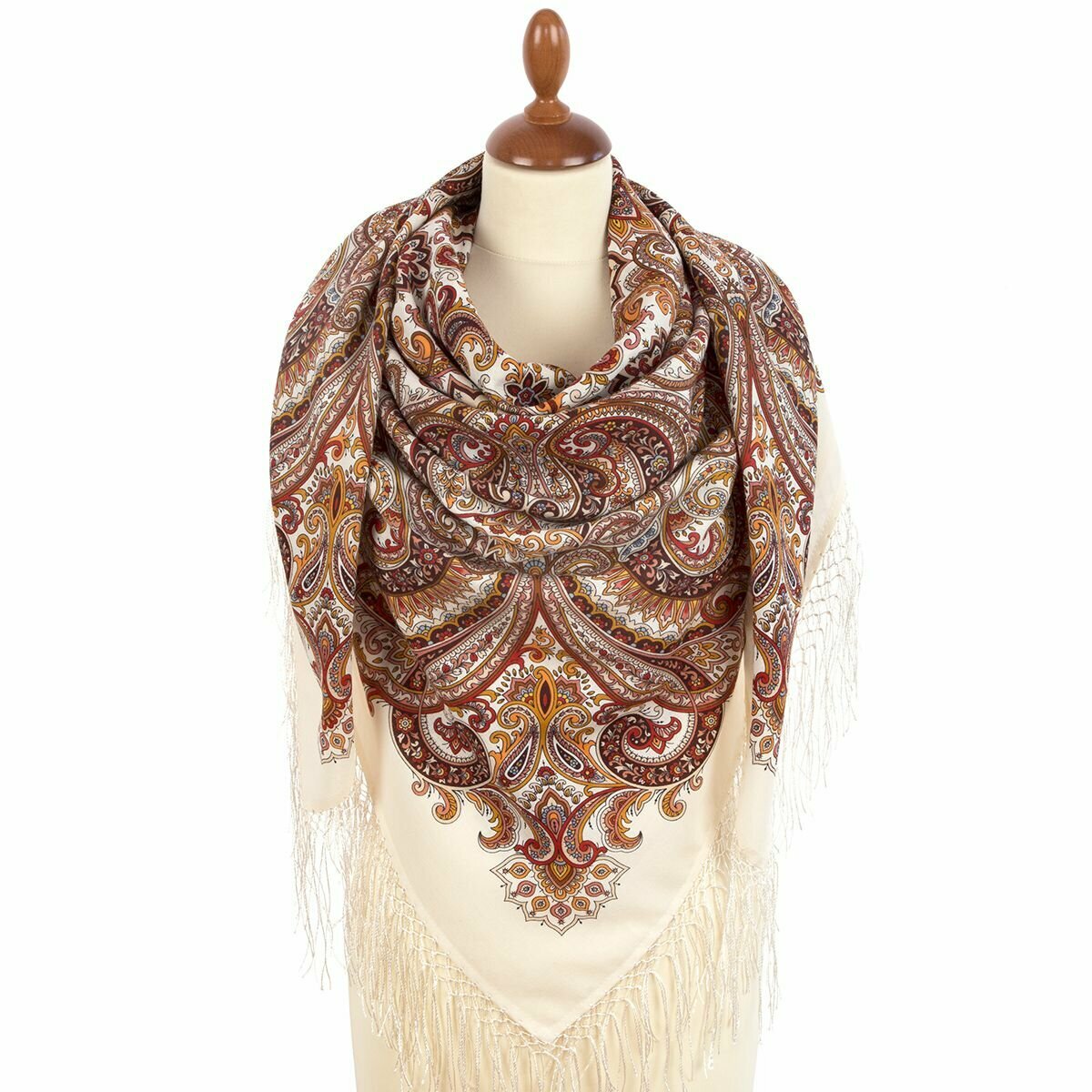 Платок Павловопосадская платочная мануфактура для женщин,135х135 см, бежевый интересное: