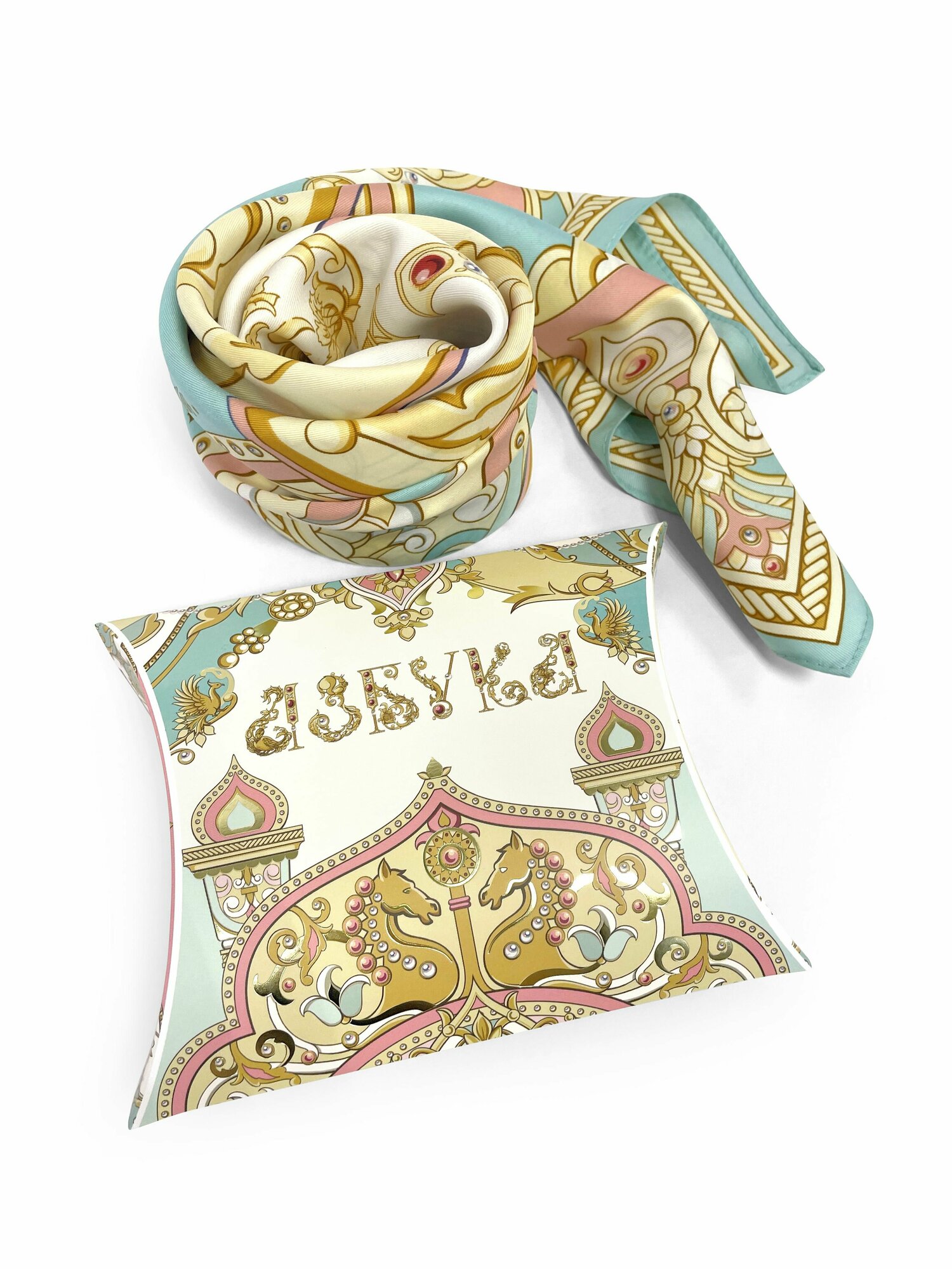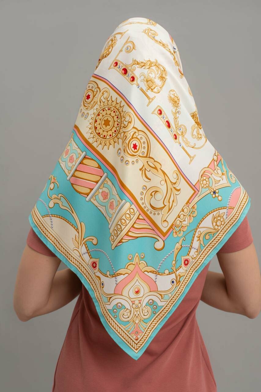 Купить Платок Русские в моде by Nina Ruchkina азбука для девочек и женщин,90х90 см, голубой/розовый