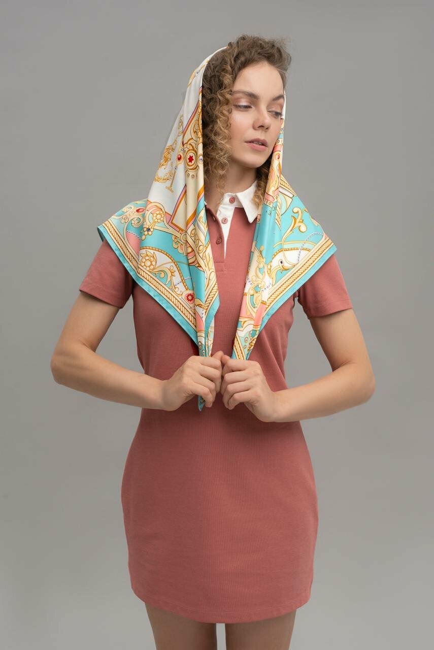 Платок Русские в моде by Nina Ruchkina азбука для девочек и женщин,90х90 см, голубой/розовый интересное: