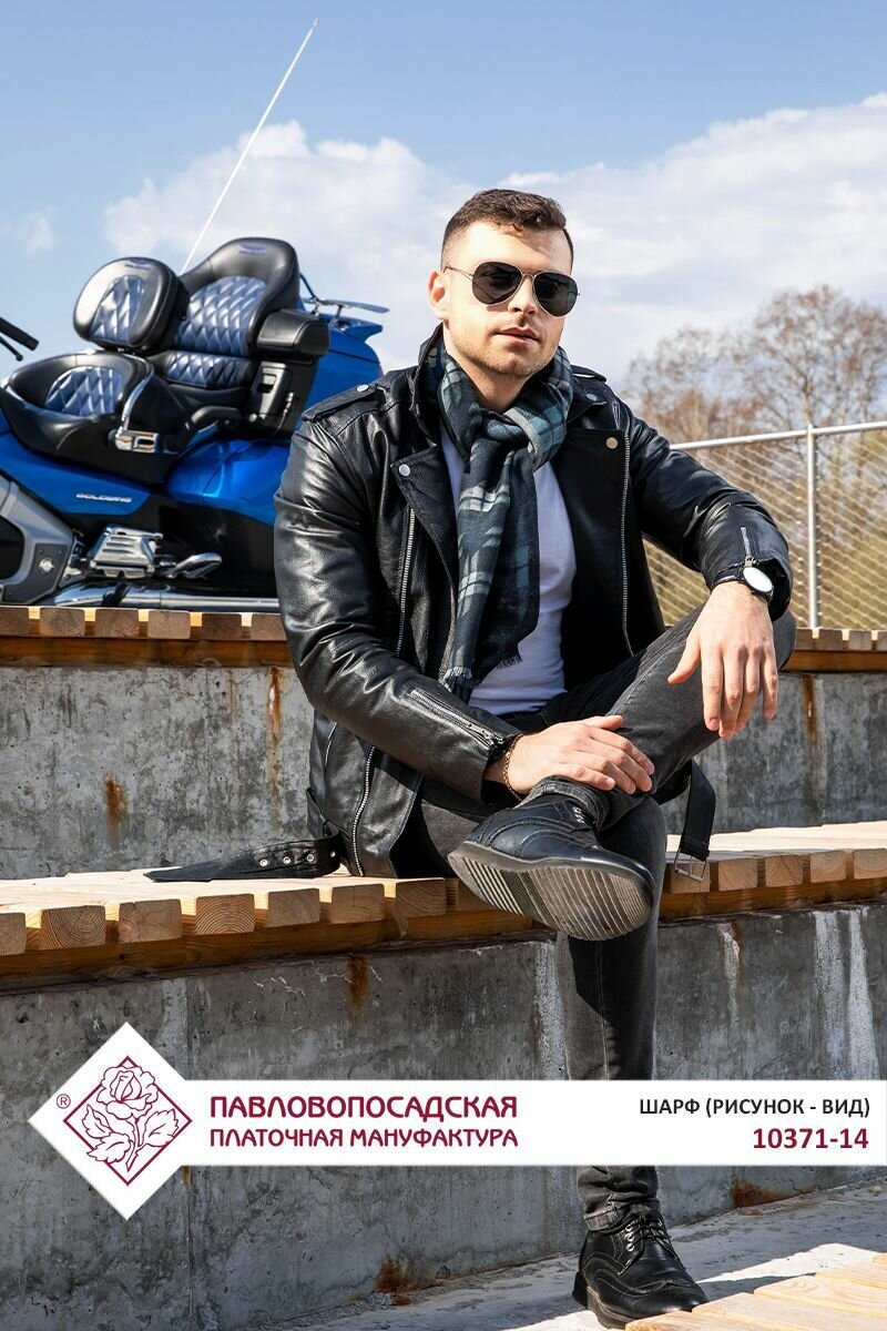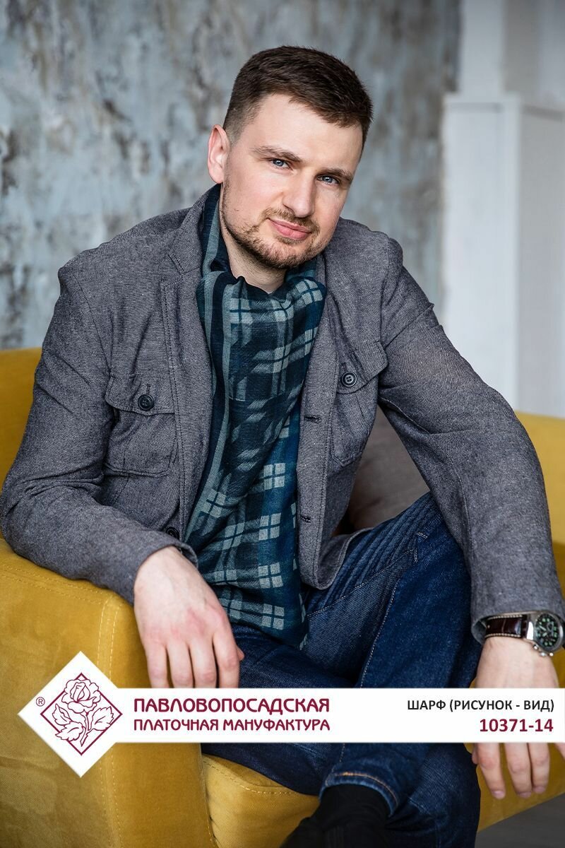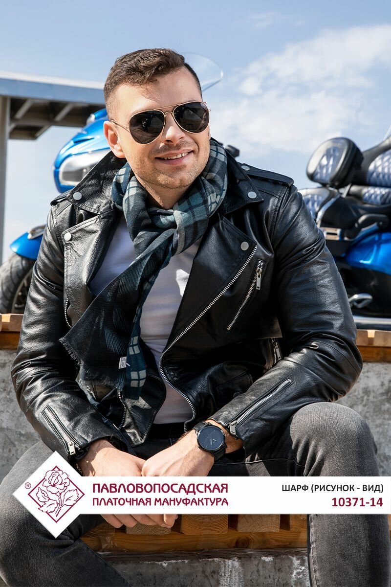 Шарф Павловопосадская платочная мануфактура для мужчин,190х40 см, one size, синий/серый интересное: