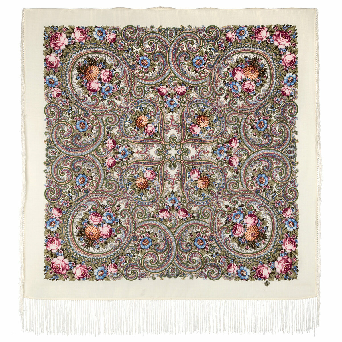 Платок Павловопосадская платочная мануфактура для женщин,110х110 см, белый интересное: