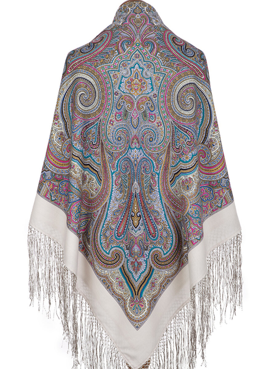 Платок Павловопосадская платочная мануфактура для женщин,148х148 см, белый