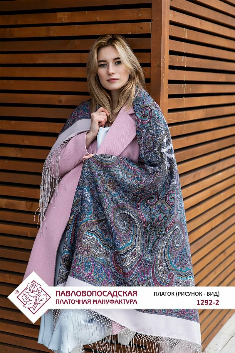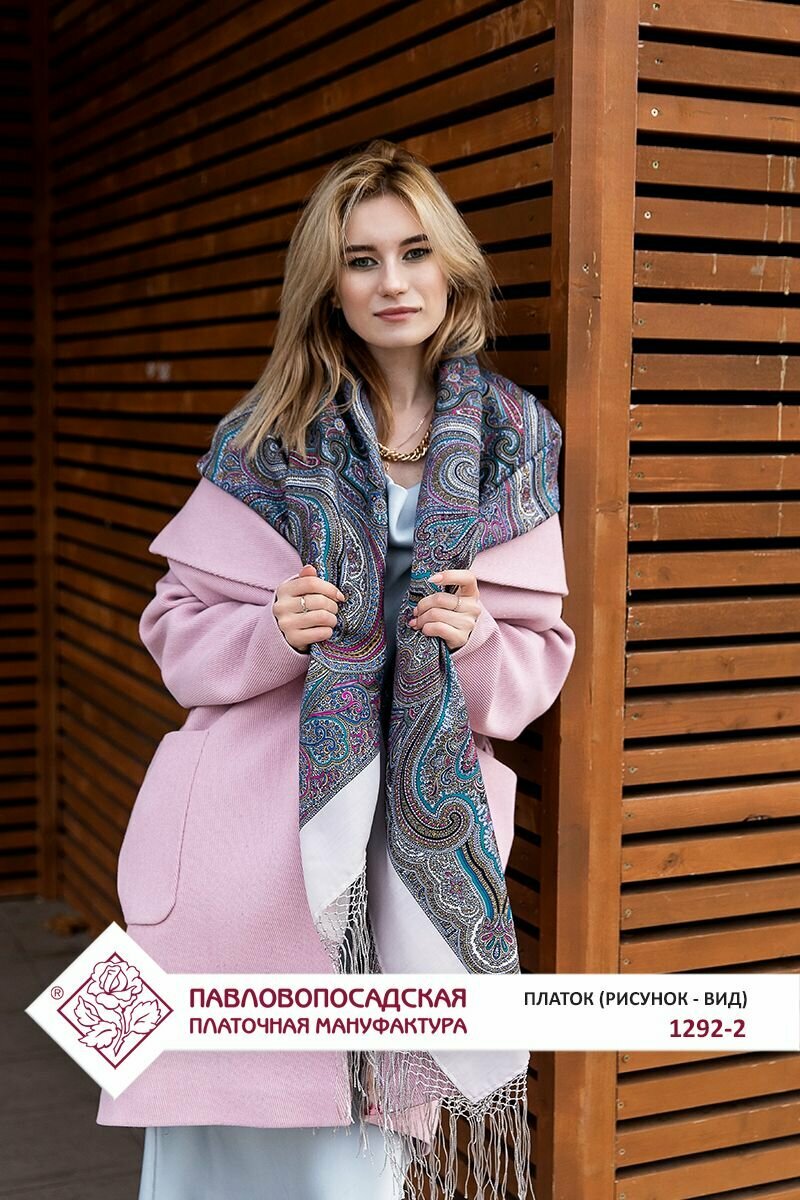 Платок Павловопосадская платочная мануфактура для женщин,148х148 см, серый интересное: