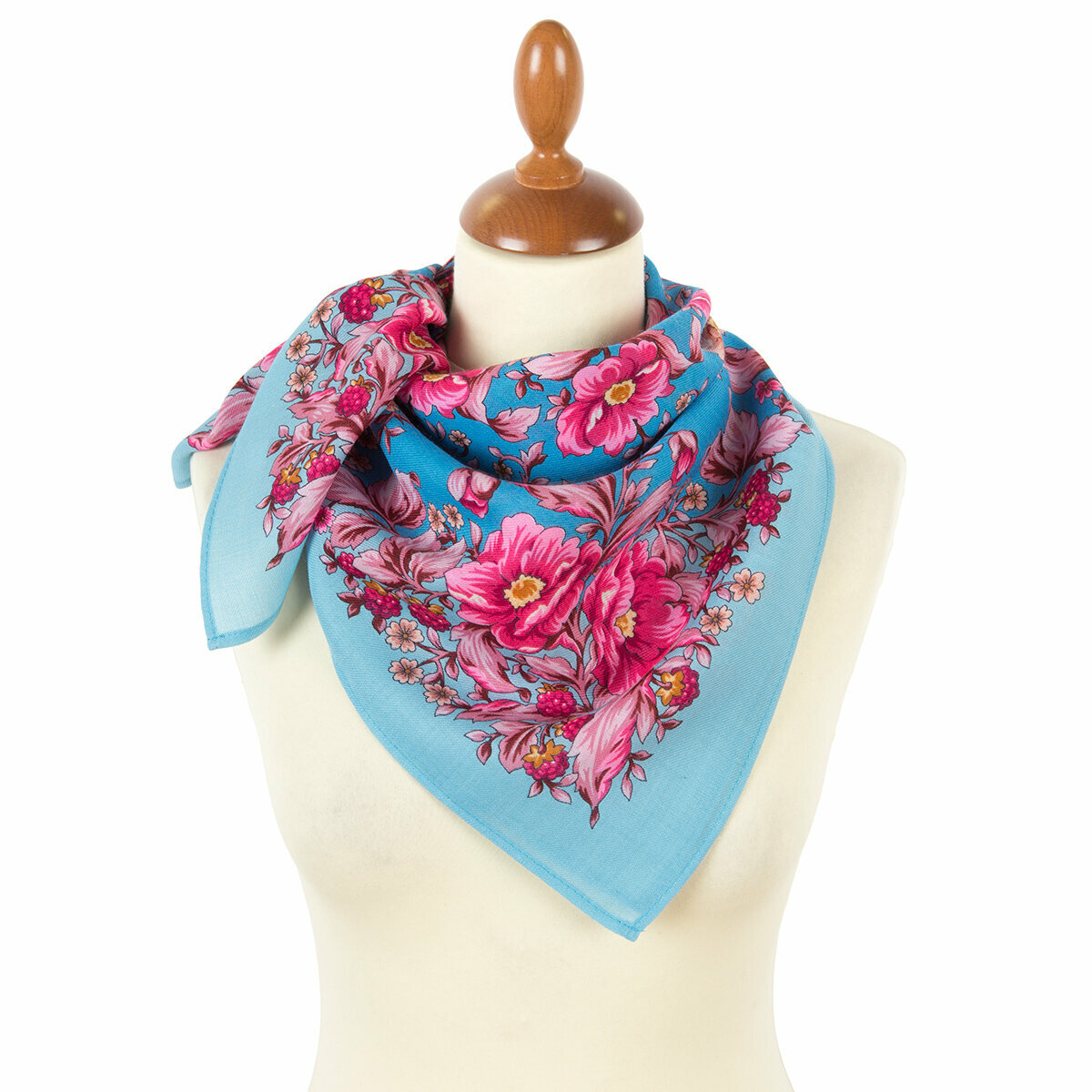 Платок Павловопосадская платочная мануфактура для женщин,72х72 см, голубой, синий, розовый интересное: