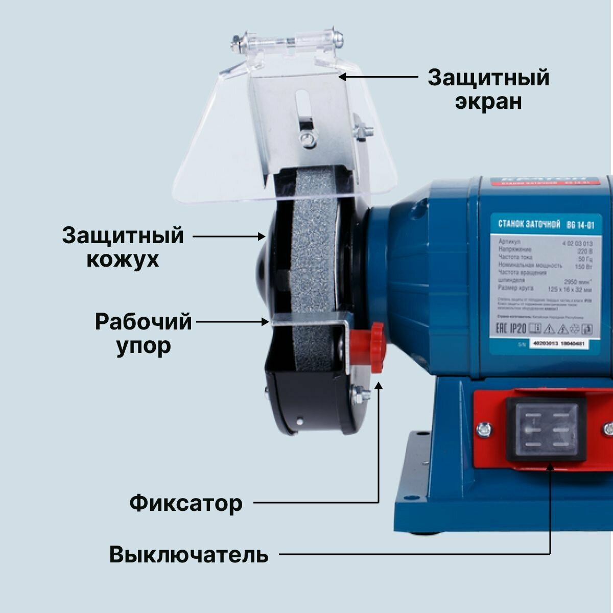 Кратон Станок заточной BG 14-01 150Вт, р/к 125/16/32 4 02 03 013 4 02 03 013