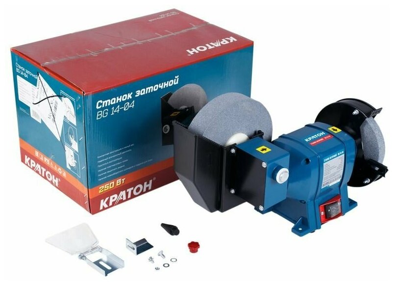 Станок заточной Кратон BG 14-04 (мощность: 250 Вт, Размеры шлифовального круга 150 32 20 мм, Поддон для охлаждения)