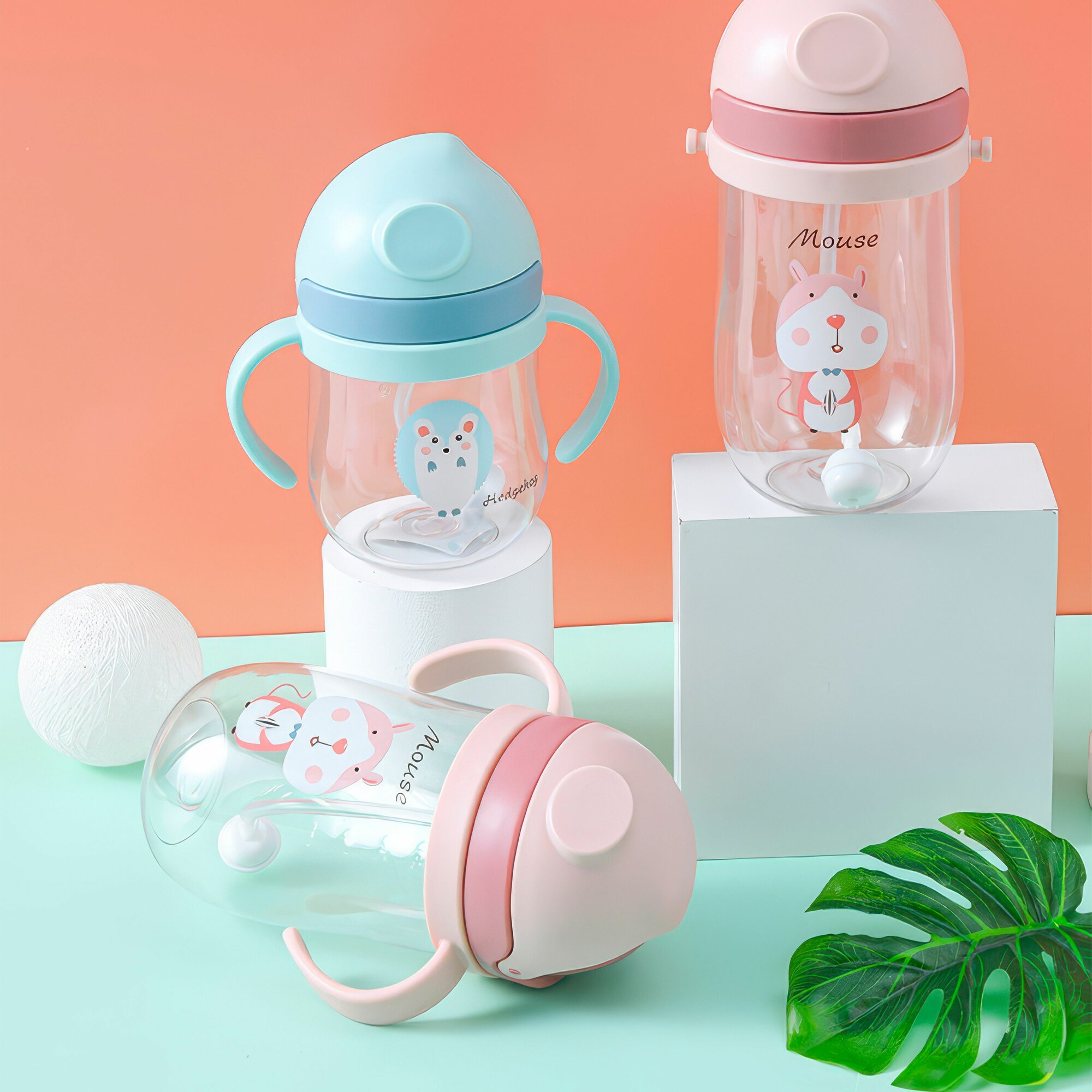Бутылочка для кормления / Детский поильник - непроливайка с гибкой трубочкой и ручками "Мышка" 350 мл