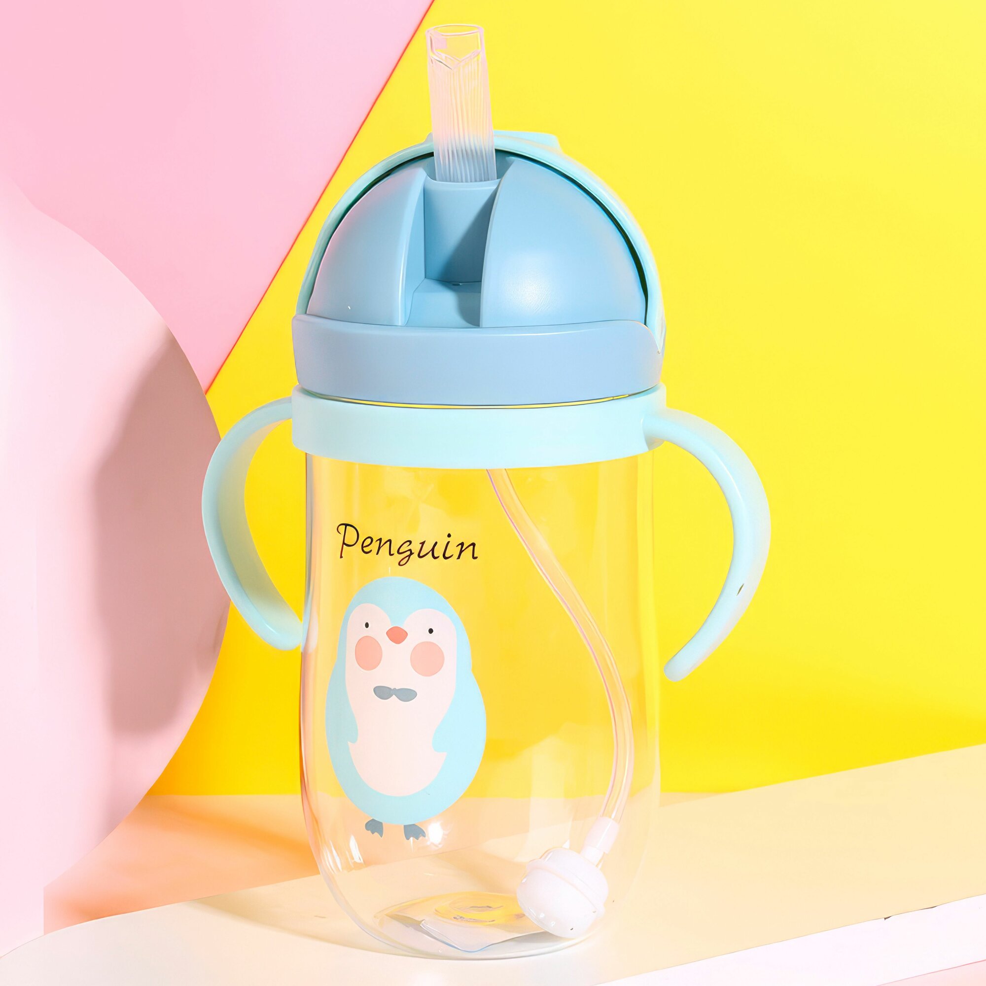 Купить Бутылочка для кормления / Детский поильник - непроливайка с гибкой трубочкой и ручками "Пингвин" 350 мл