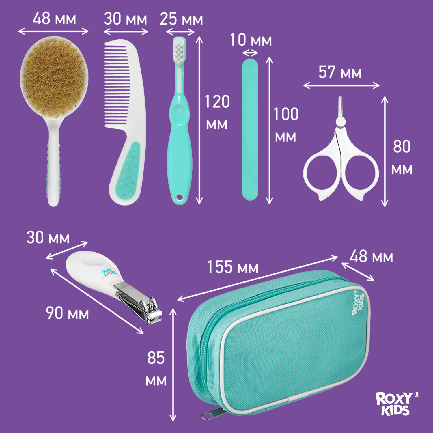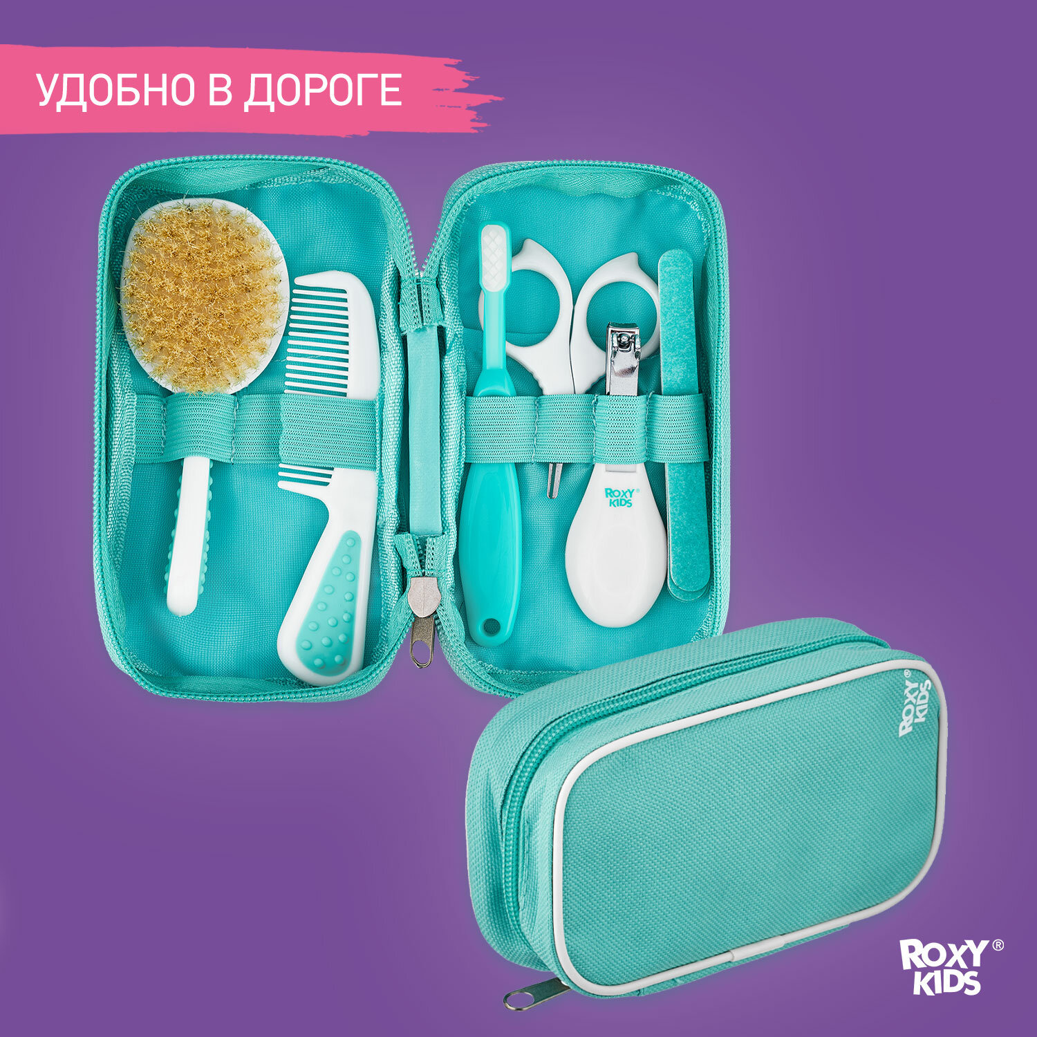 Набор гигиенический для ухода за малышом с рождения ROXY-KIDS в пенале в дорогу, цвет бирюзовый интересное:
