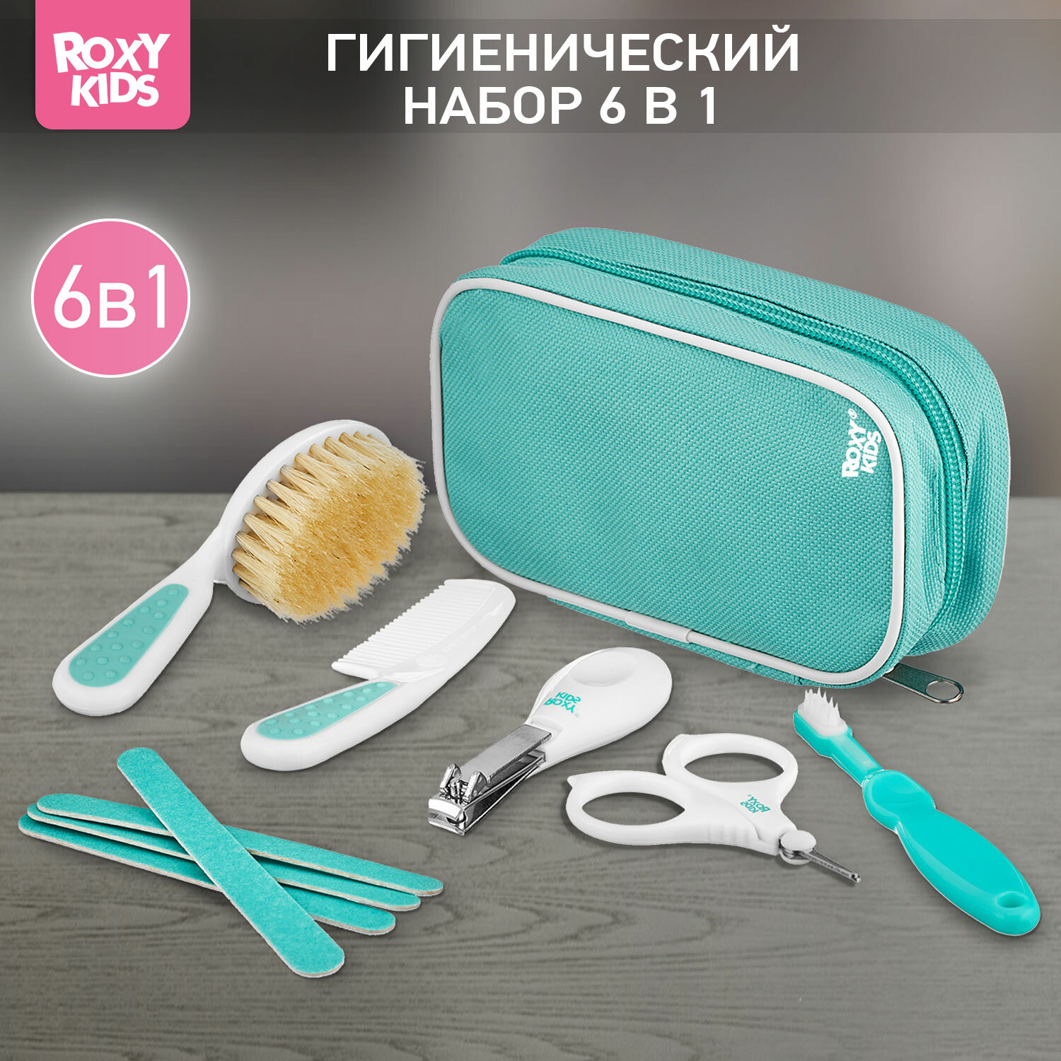 Купить Набор гигиенический для ухода за малышом с рождения ROXY-KIDS в пенале в дорогу, цвет бирюзовый