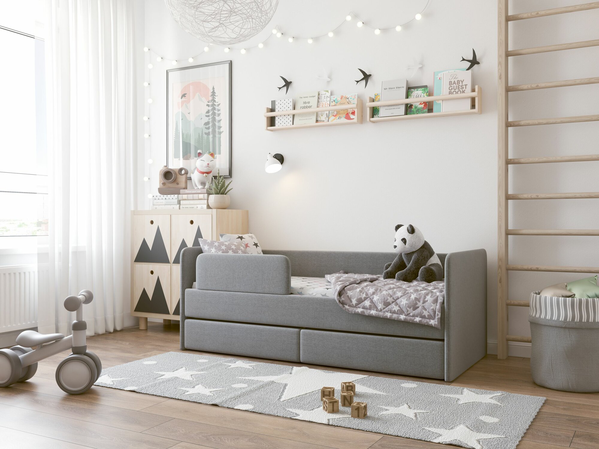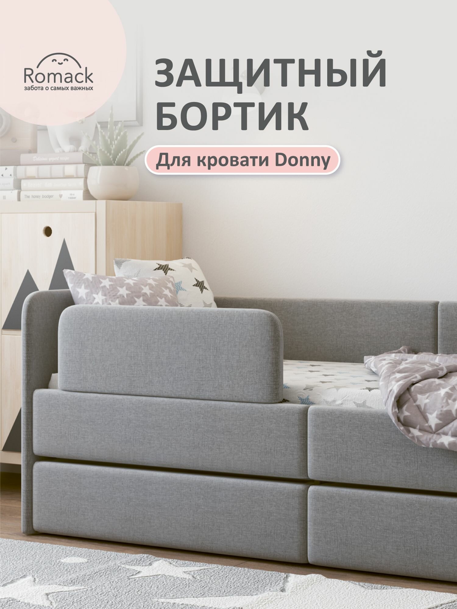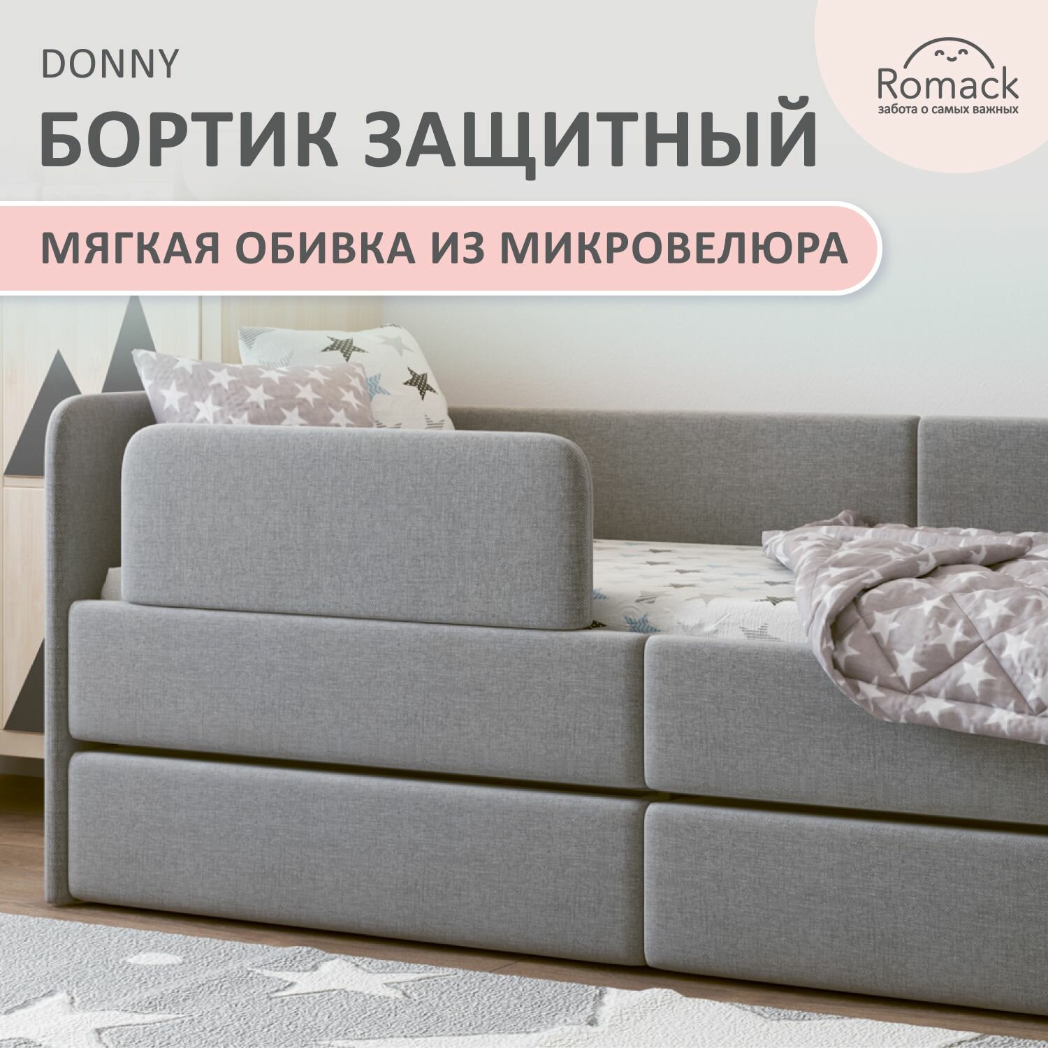 Бортик для кроватки Romack Donny, монтаж без сверления, гипоаллергенный, рогожка грей. интересное: