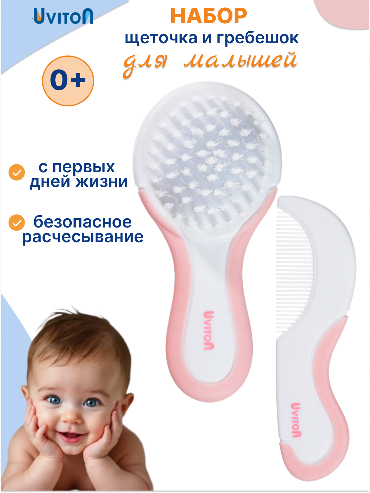 Расческа-щеточка и гребешок для новорожденных от бренда Uviton