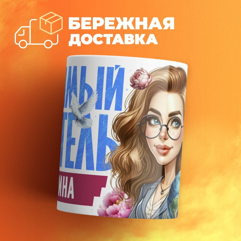 Кружка, "Аделина любимый учитель", на день учителя, в подарок классному руководителю, преподавателю или коллеги 330 мл