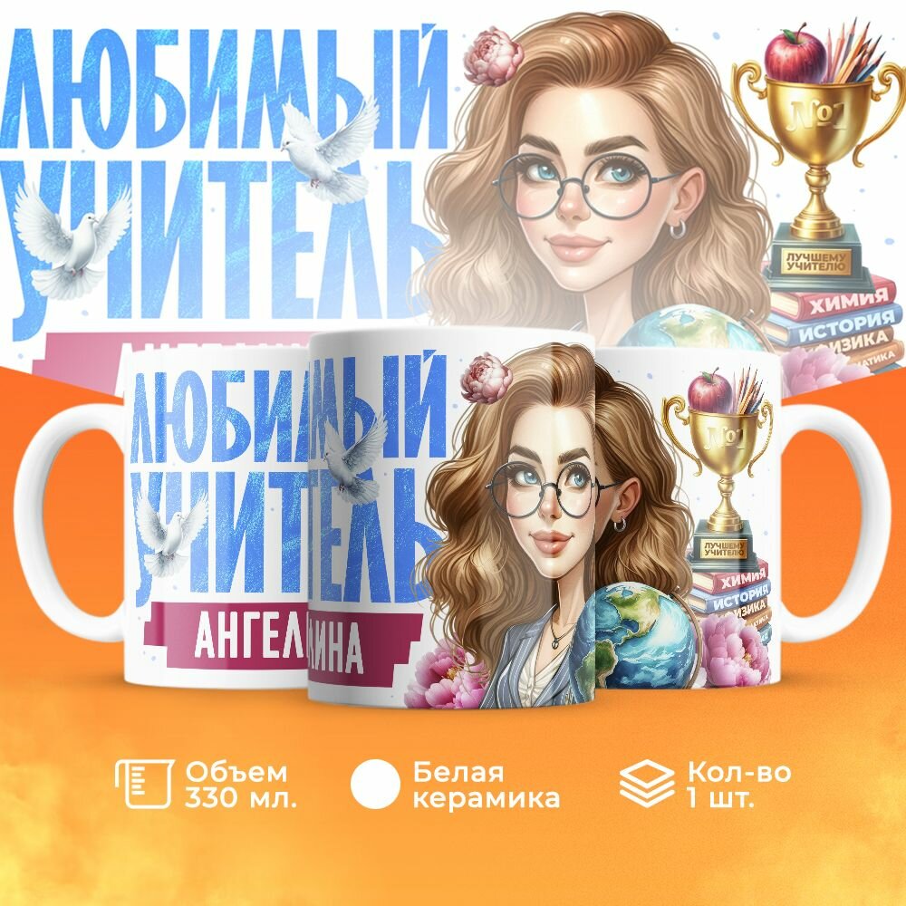 Купить Кружка, "Ангелина любимый учитель", на день учителя, в подарок классному руководителю, преподавателю или коллеги 330 мл