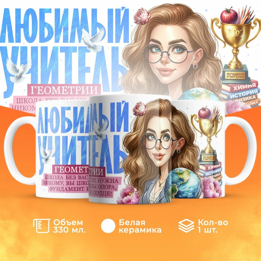 Купить Кружка, "Любимый учитель геометрии", на день учителя, в подарок классному руководителю, преподавателю или коллеги 330 мл