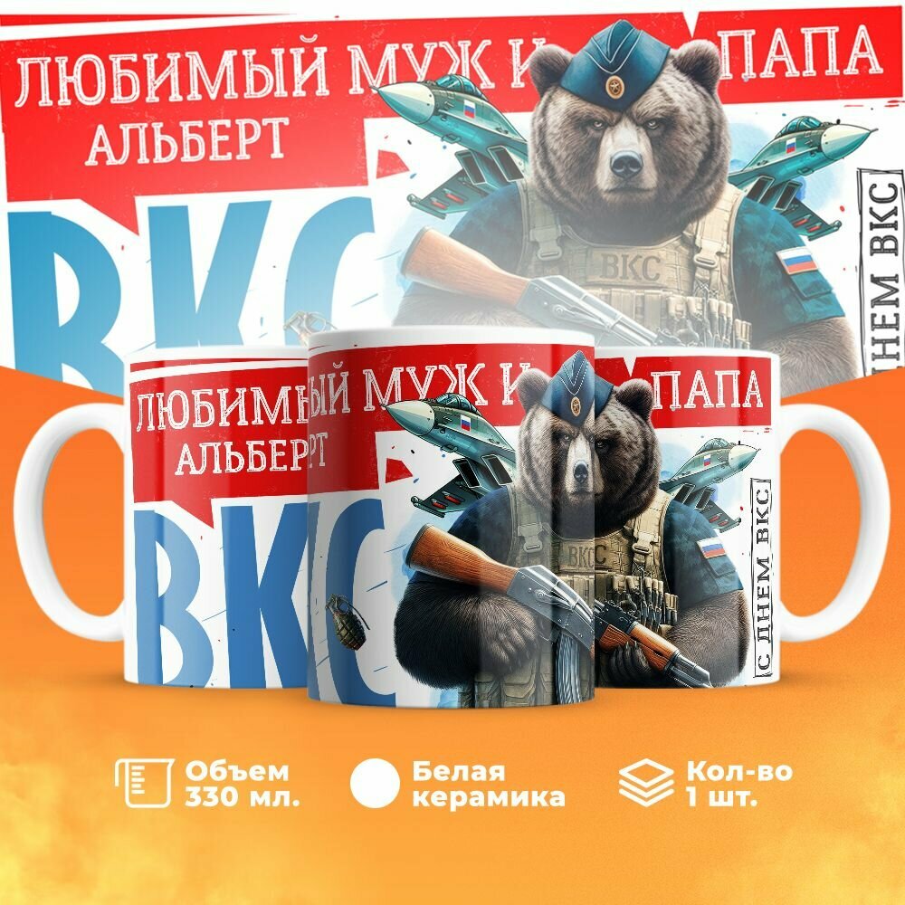 Купить Кружка, "Альберт Самый лучший муж и папа, с днём ВКС!", на день ВКС, в подарок для мужа, отца, летчика или военного 330 мл