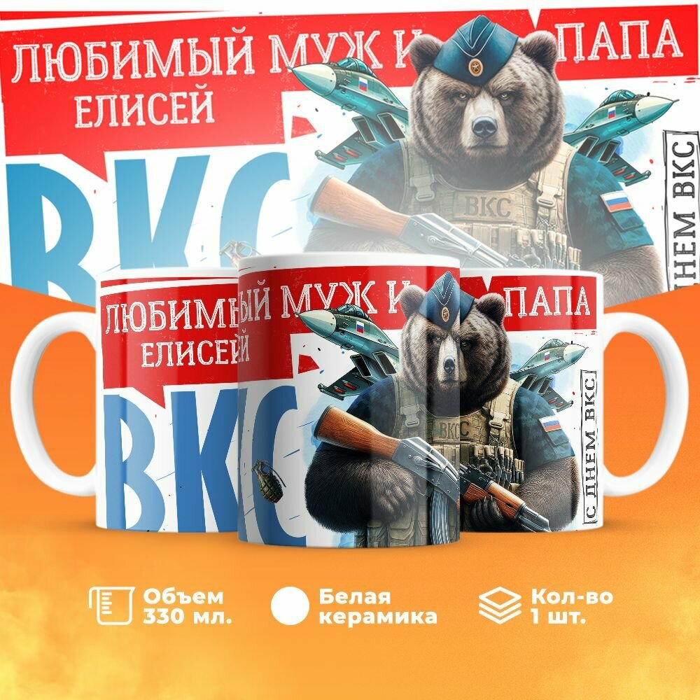 Купить Кружка, "Елисей Самый лучший муж и папа, с днём ВКС!", на день ВКС, в подарок для мужа, отца, летчика или военного 330 мл
