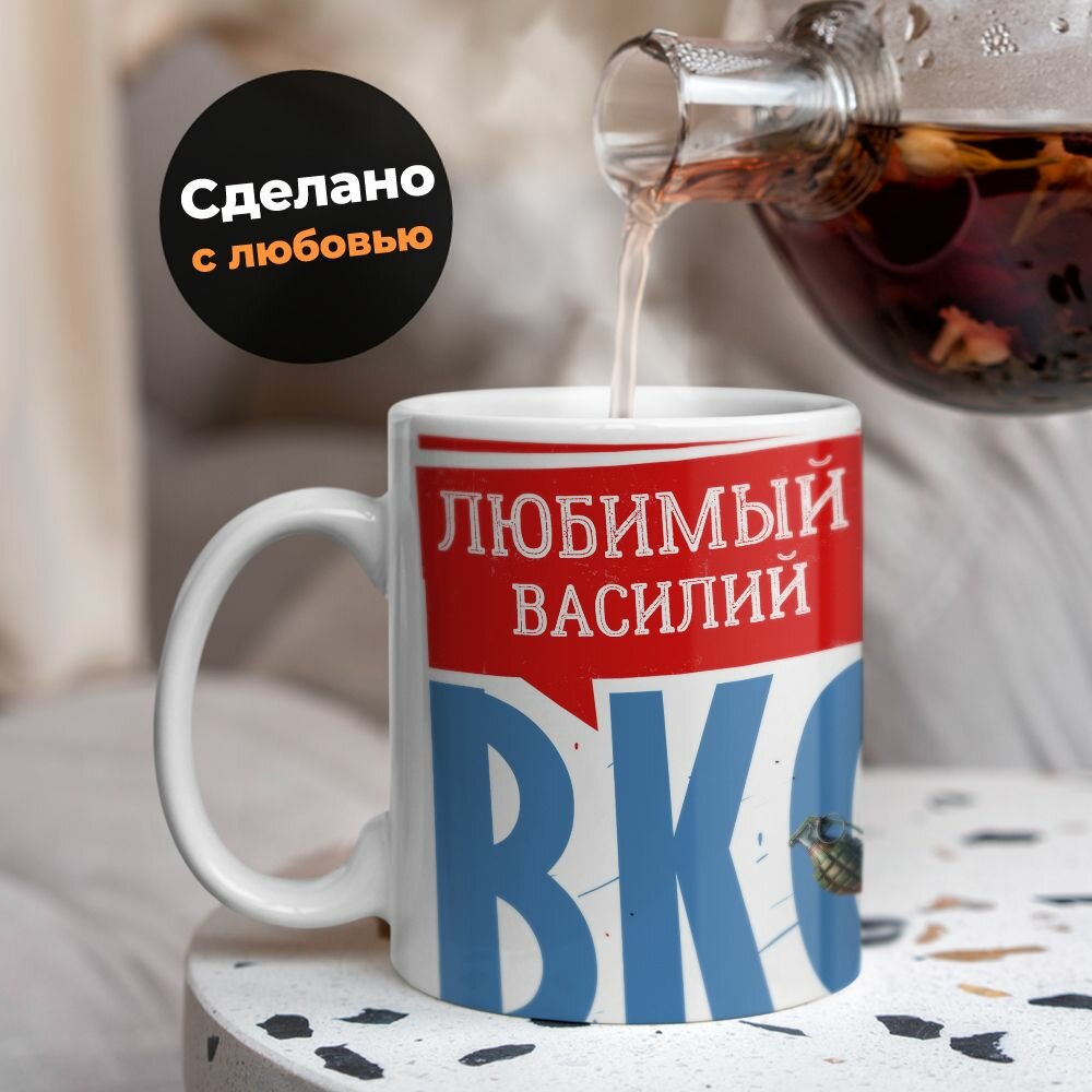 Купить Кружка, "Василий Самый лучший муж и папа, с днём ВКС!", на день ВКС, в подарок для мужа, отца, летчика или военного 330 мл